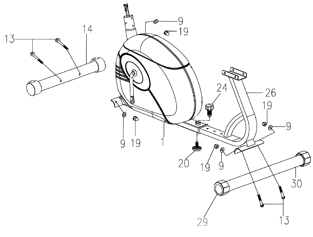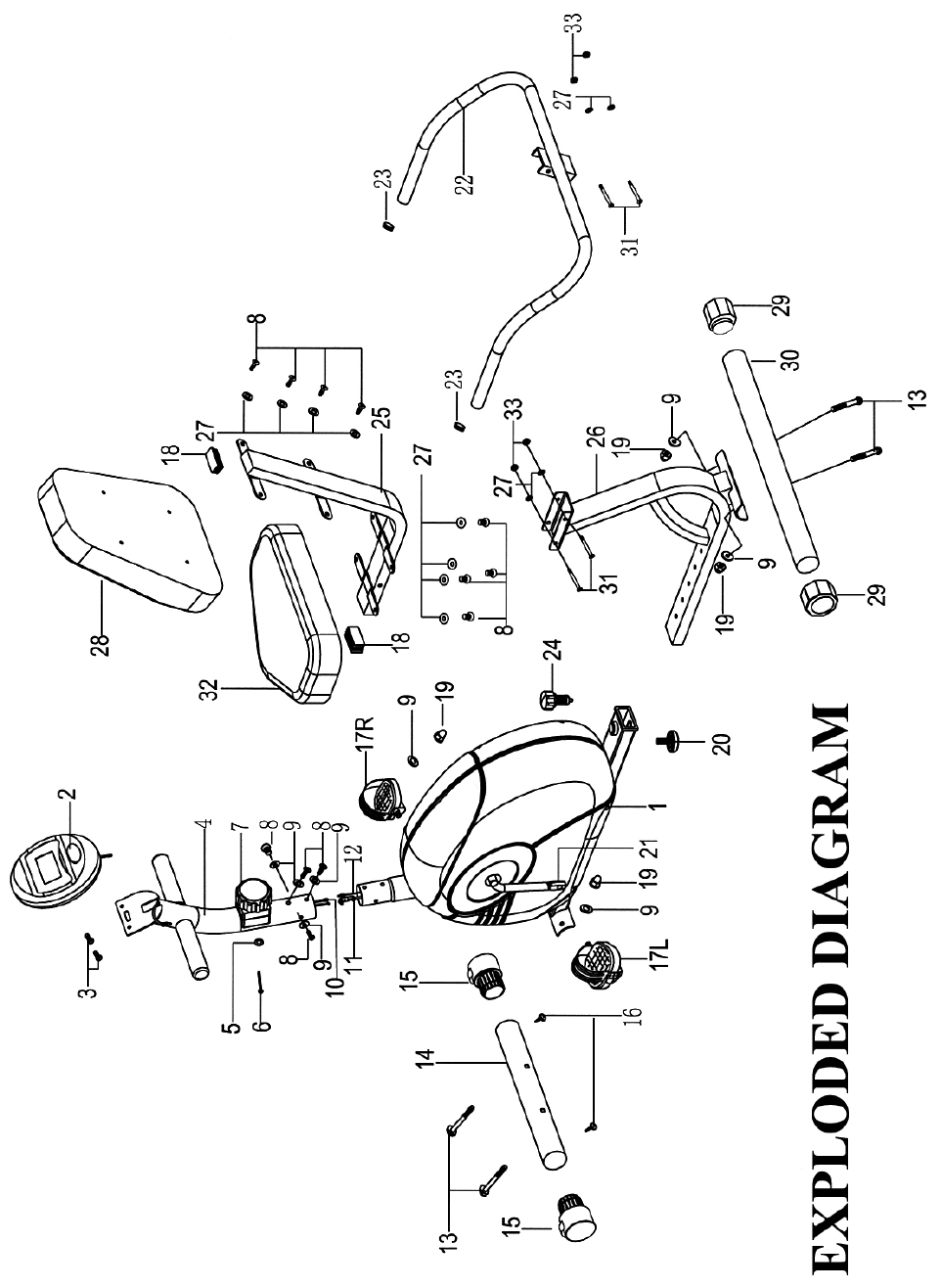 - Thread the left Pedal (#17L) Counterclockwise into the left Crank #21). Thread the right Pedal (#17R) Clockwise into the Crank on the other side.