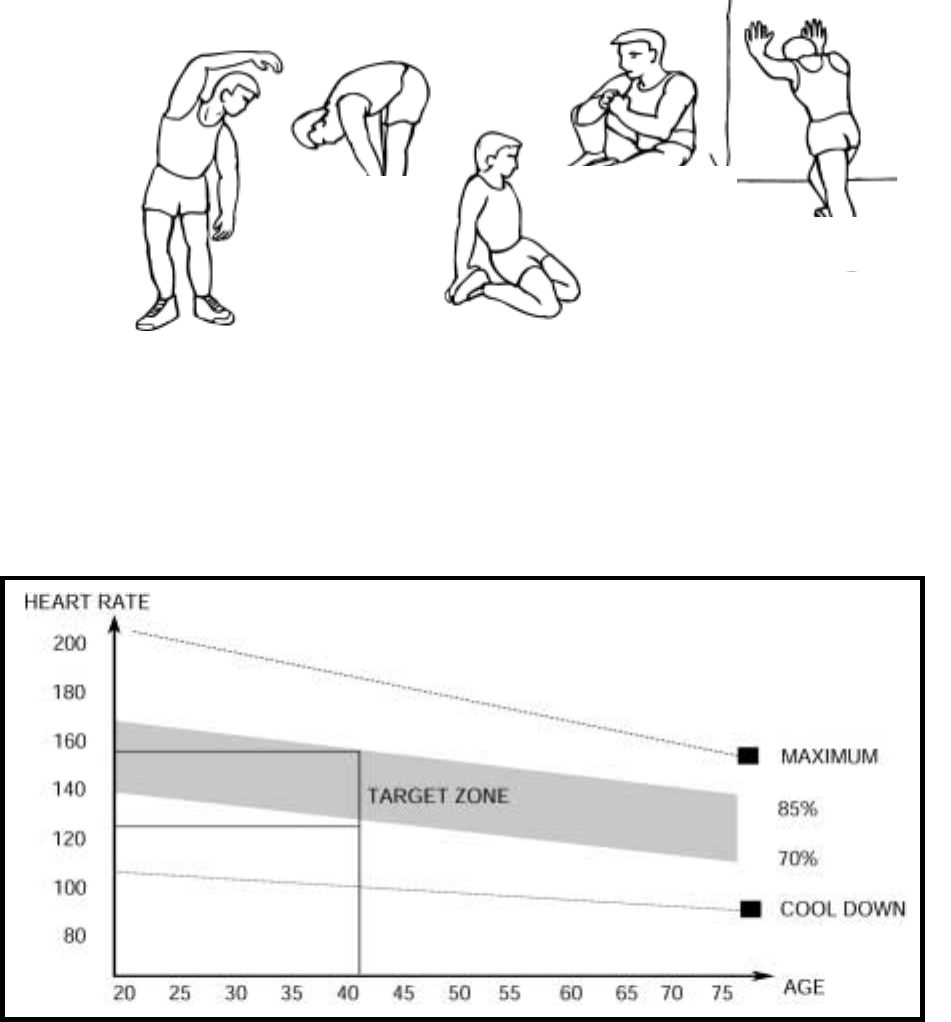 few stretching exercises as shown below. Each stretch should be held for