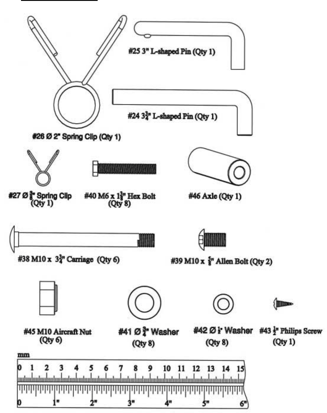 (#46), two M10 x 5/8” Allen Bolts (#39) and ∅ ¾” Washers (#41).
