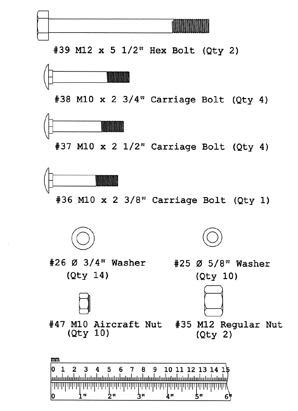36 M10 x 2 3/8” Carriage Bolt 1