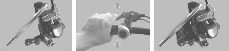 ③ Right press the brake with the elbow until fix and tighten the brake. Then loose the E-bike brake, the brake returns