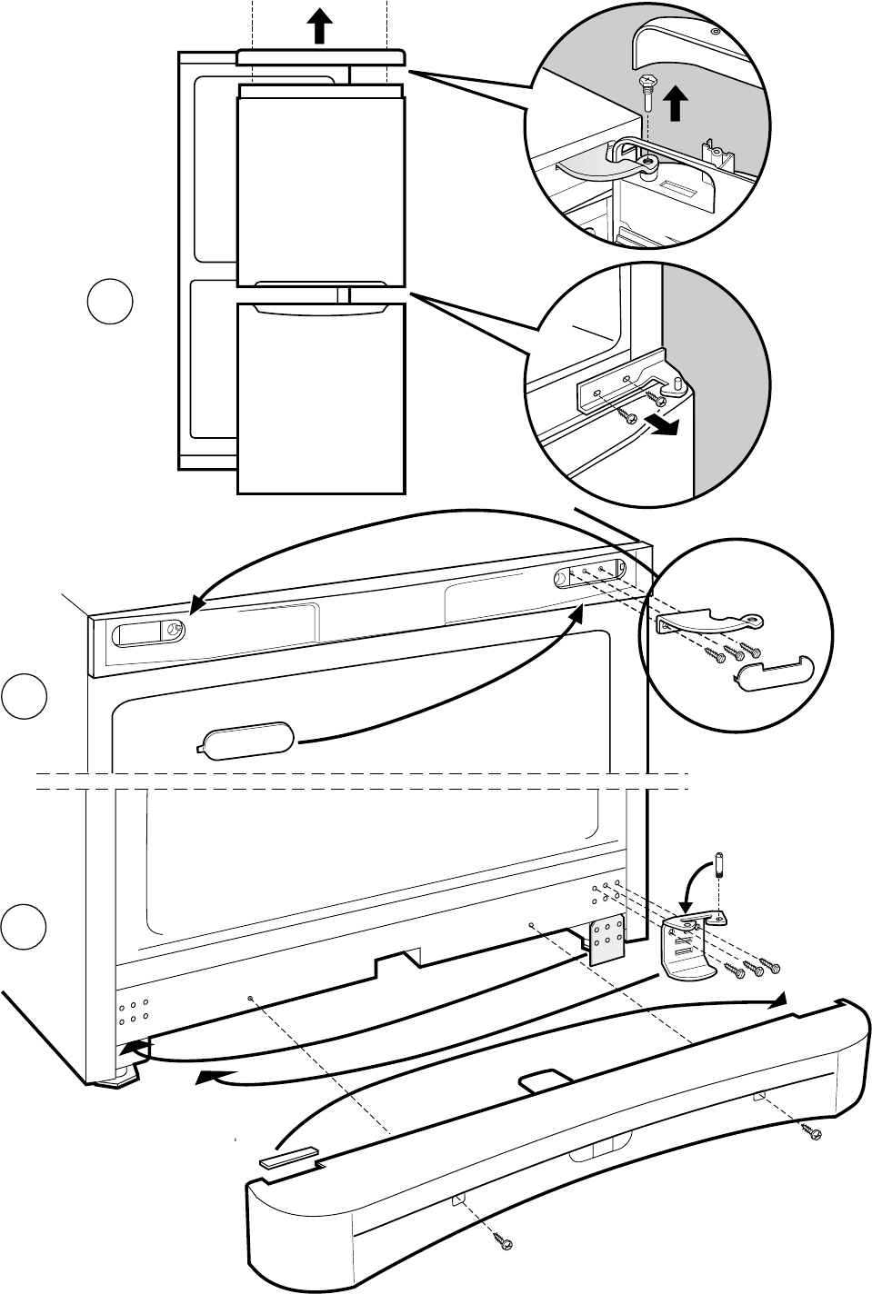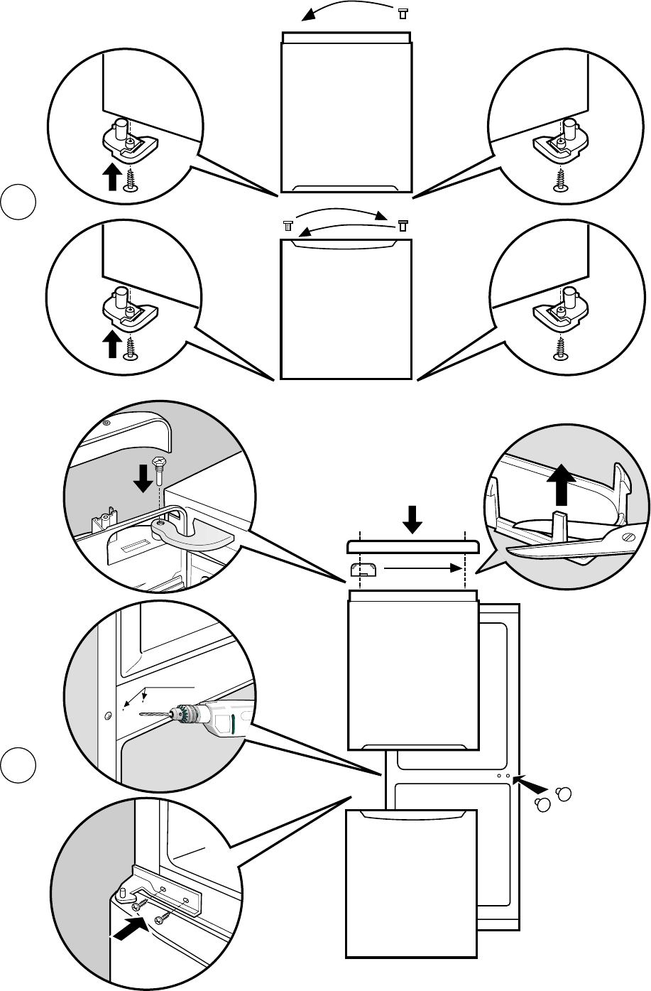 • The appliance was installed between cabinets or objects