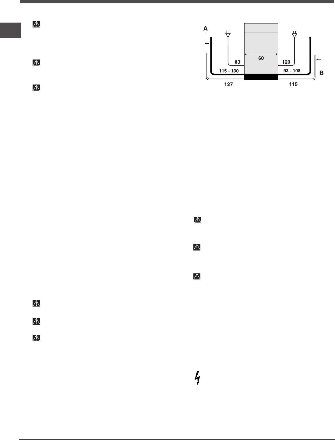 hoses or the electricity supply cable.