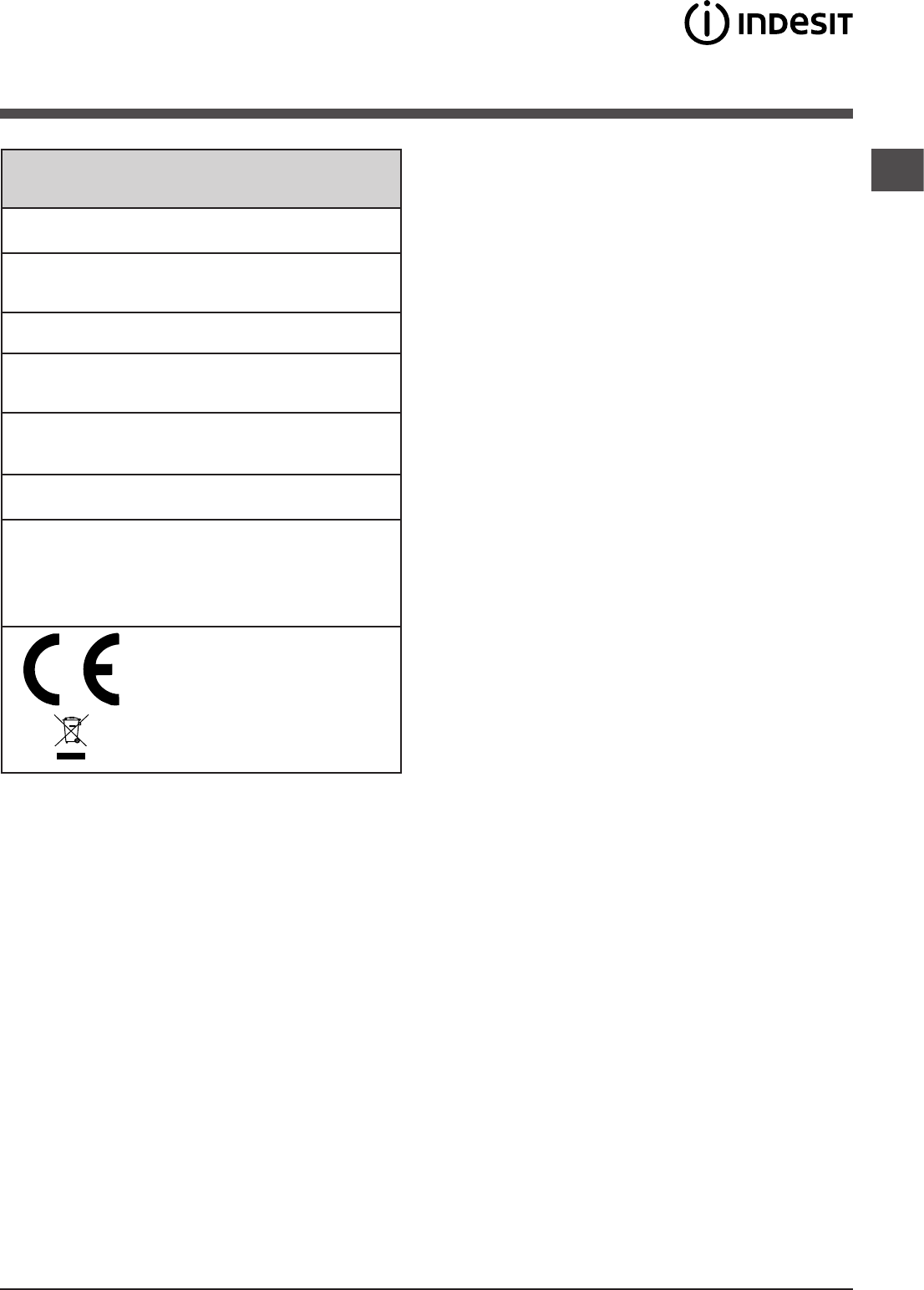 As part of Indesit’s continued commitment to helping the environment, Indesit reserves the right to use quality, recycled