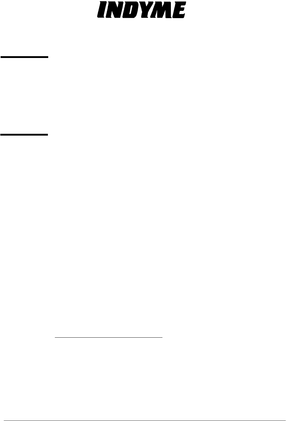 shipment as received from Indyme for this installation. Notify Indyme promptly of
