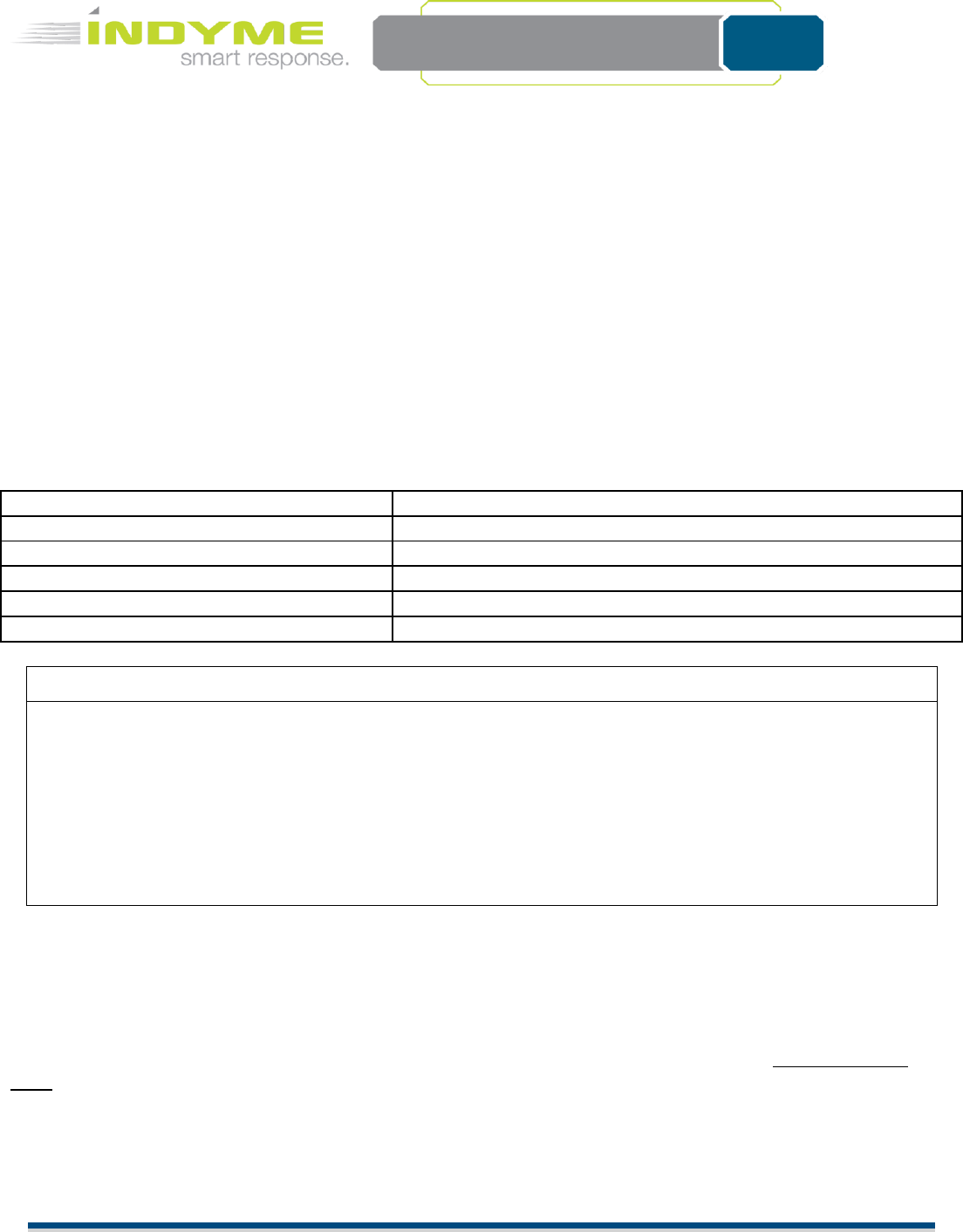 Indyme Solutions, Inc. 8295 Aero Place San Diego, CA 92123 USA +1.858.268.0717 +1.800.829.6141 Page 3 of 7