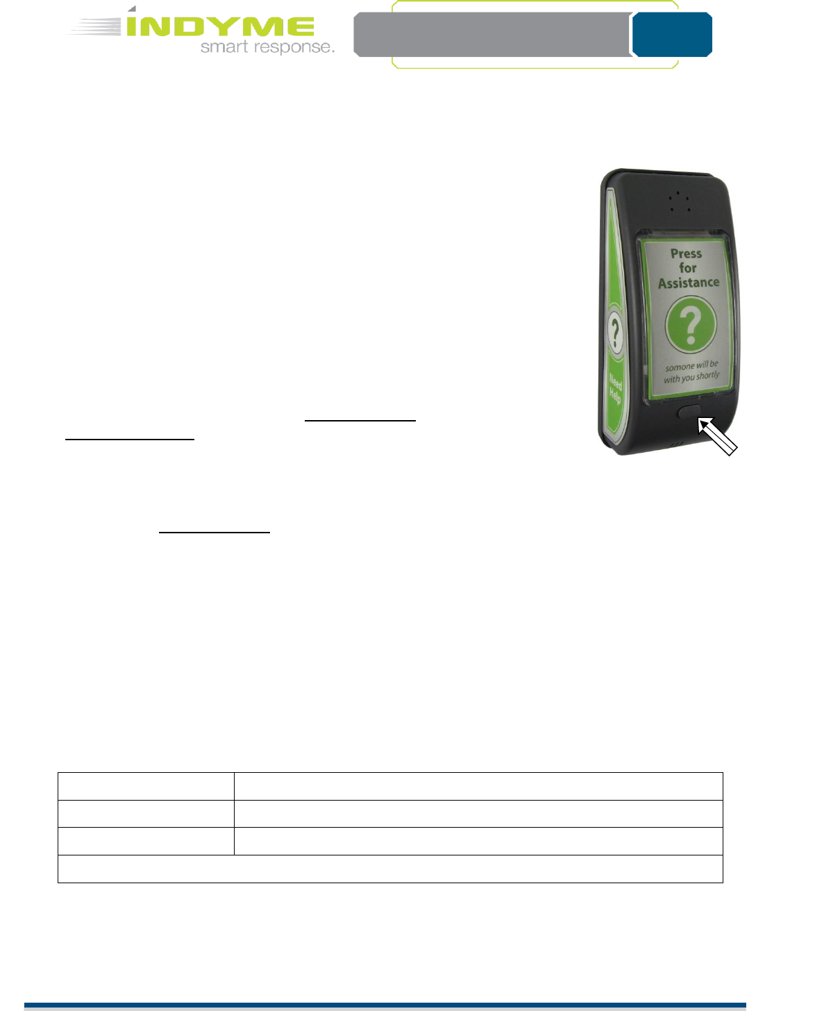 Indyme Solutions CB961 Wireless Help Button User Manual