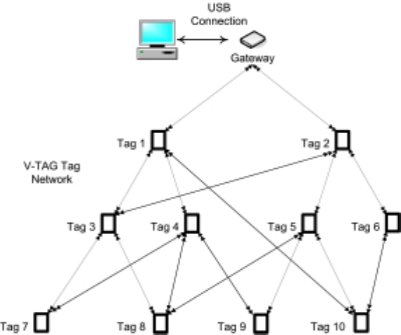 the V-TAG tag relays messages from other V-TAG tags which aids with tag read range