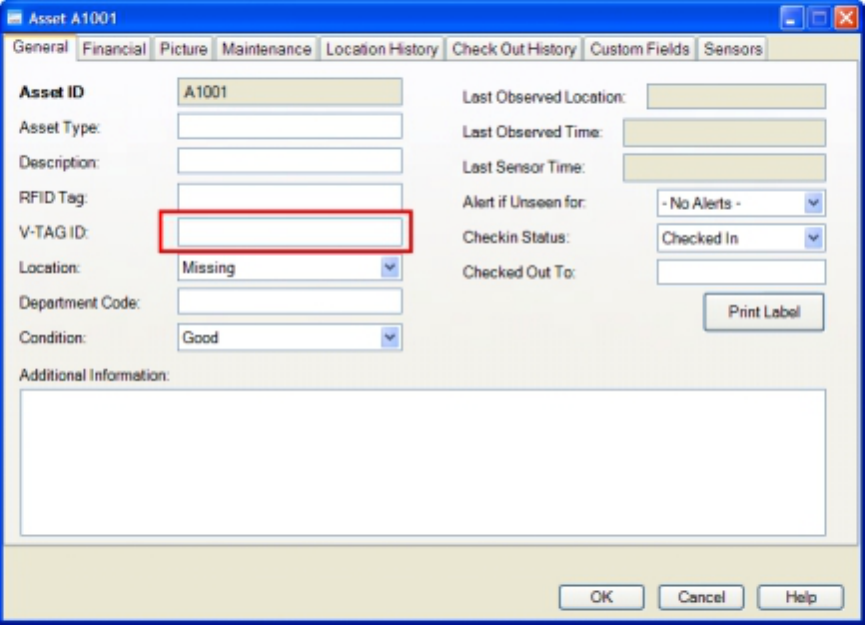 To associate a V-TAG tag with an asset, simply enter the V-TAG ID printed on the tag