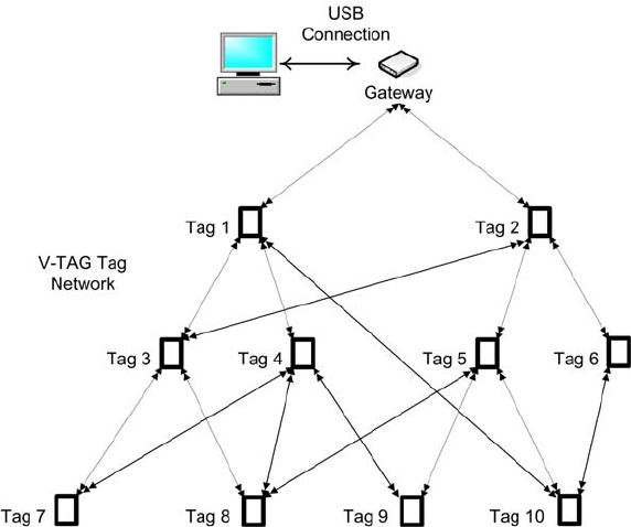 gateway, the V-TAG tag relays messages from other V-TAG tags which aids with tag