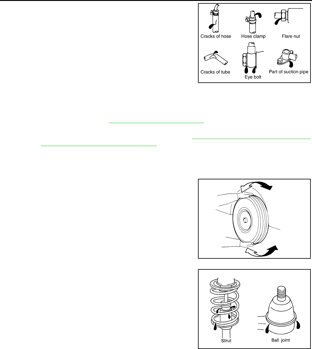 Check ball joint, dust cover and other component parts for looseness, wear, damage and grease leakage.