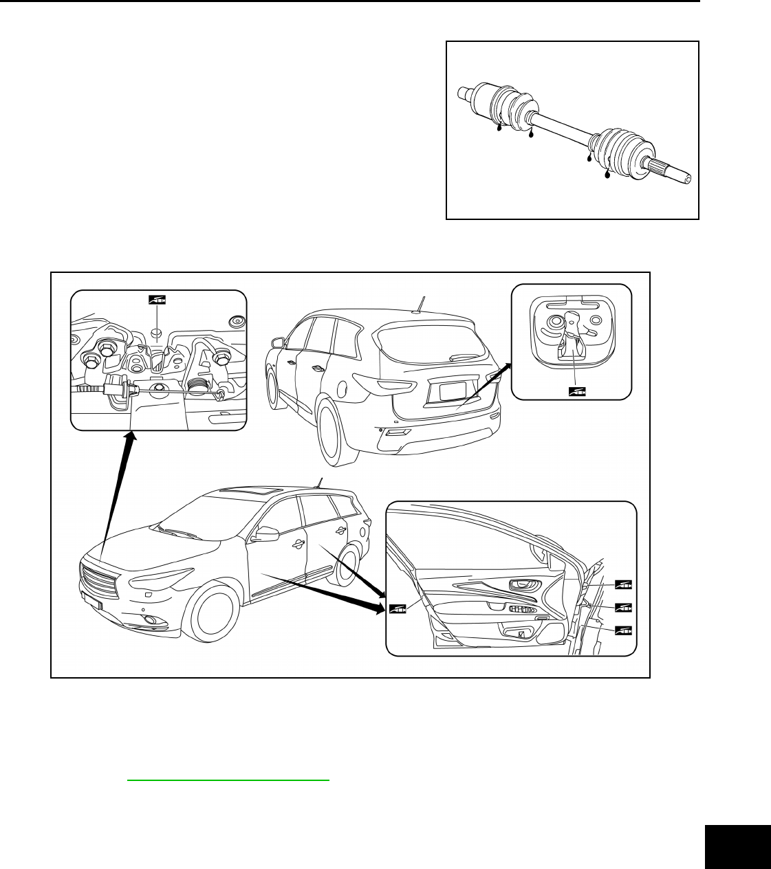 LOCKS, HINGES AND HOOD LATCH : Lubricating INFOID:0000000011132030