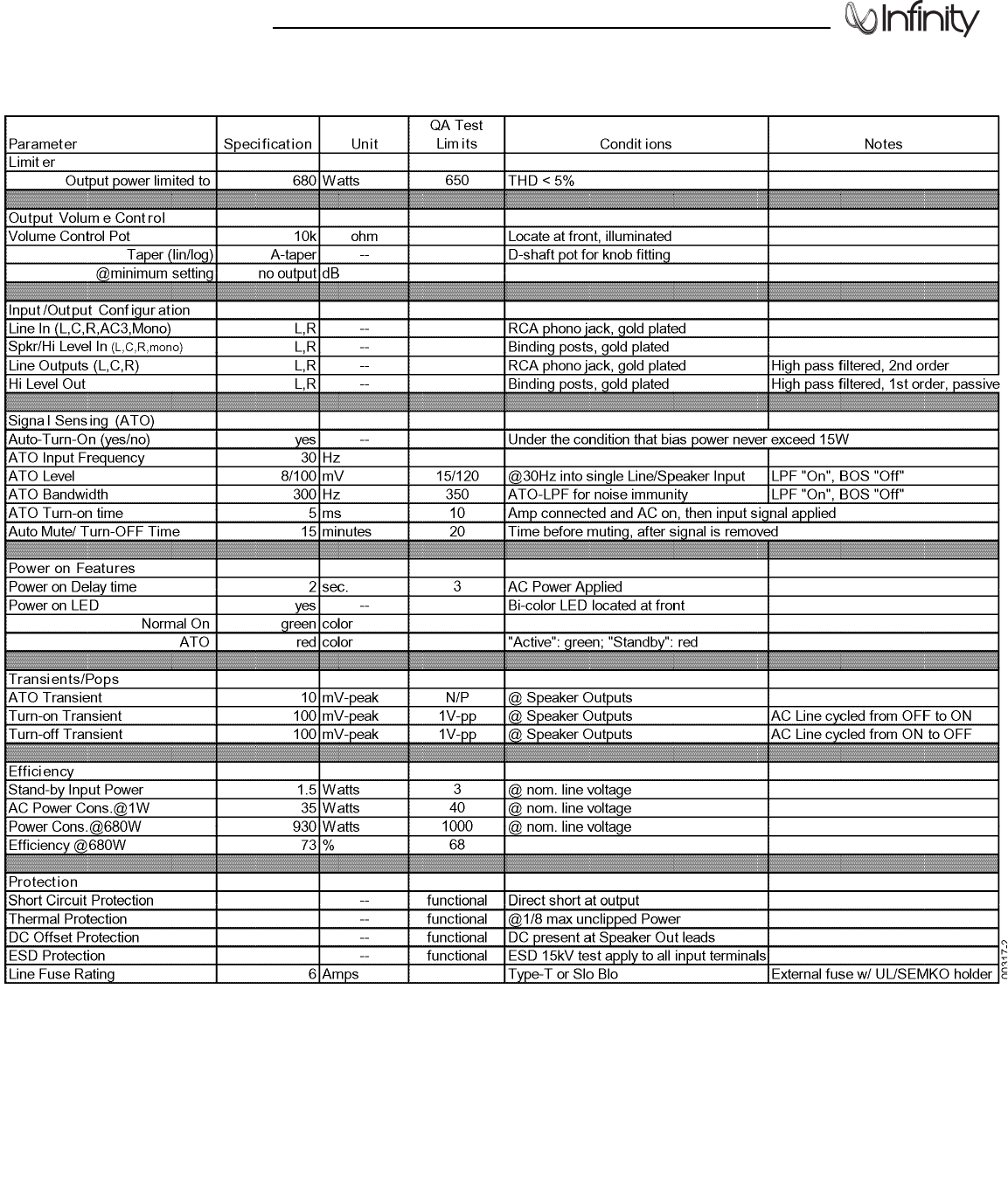 specifications and construction details in this and related Infinity publications are therefore subject to