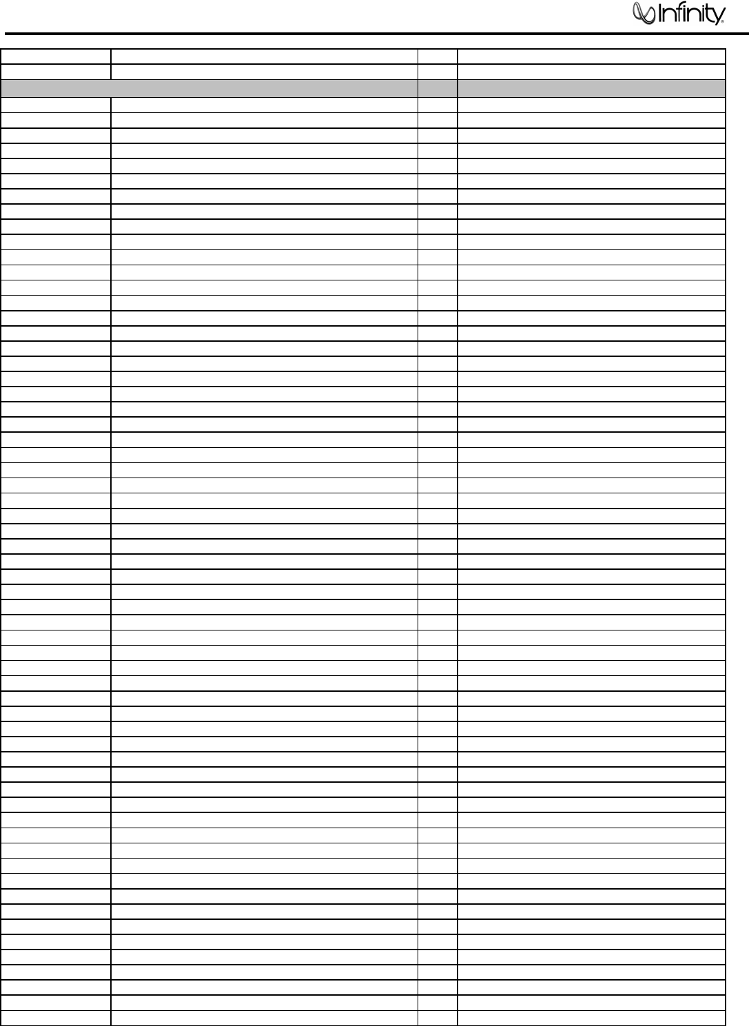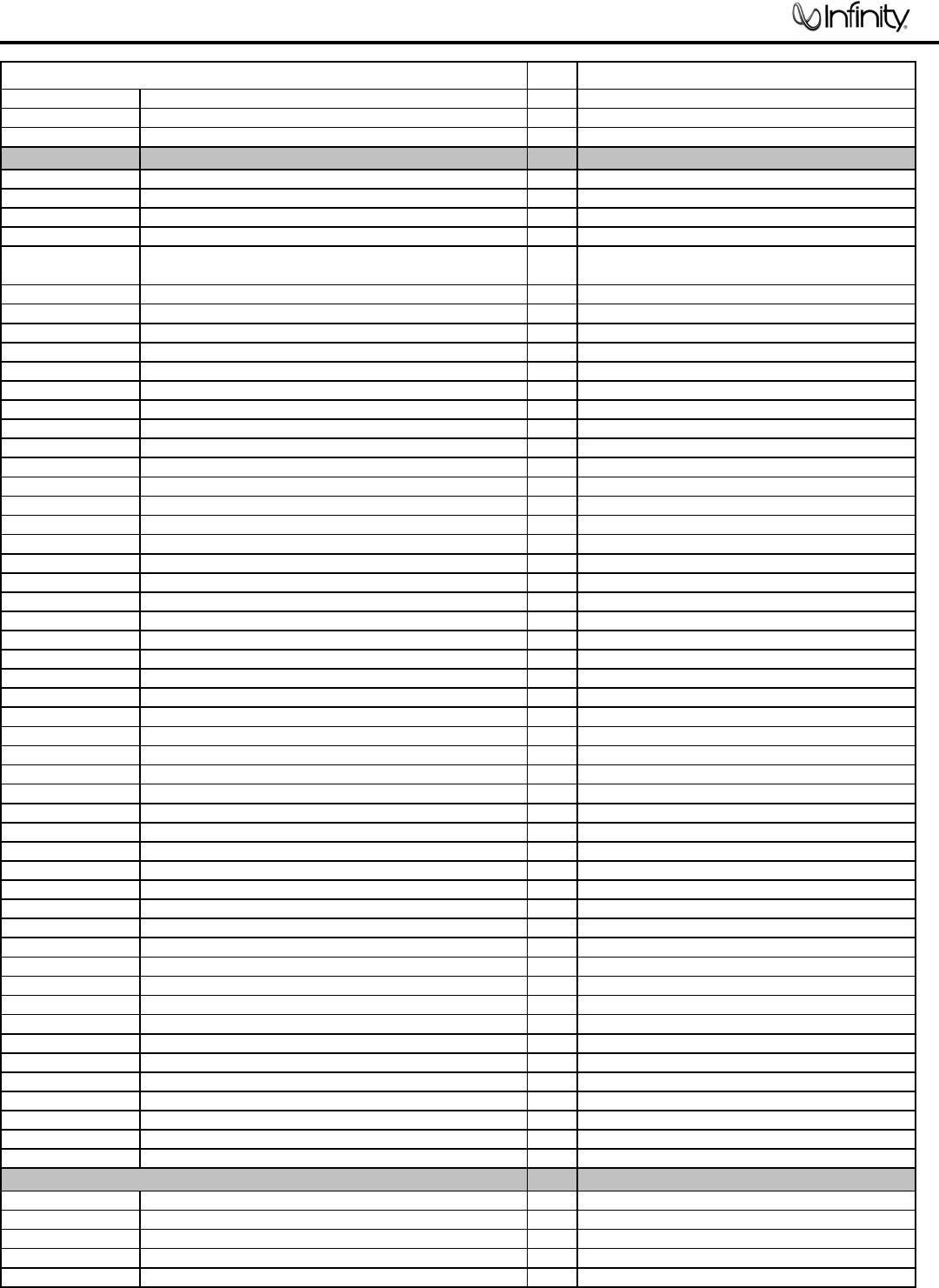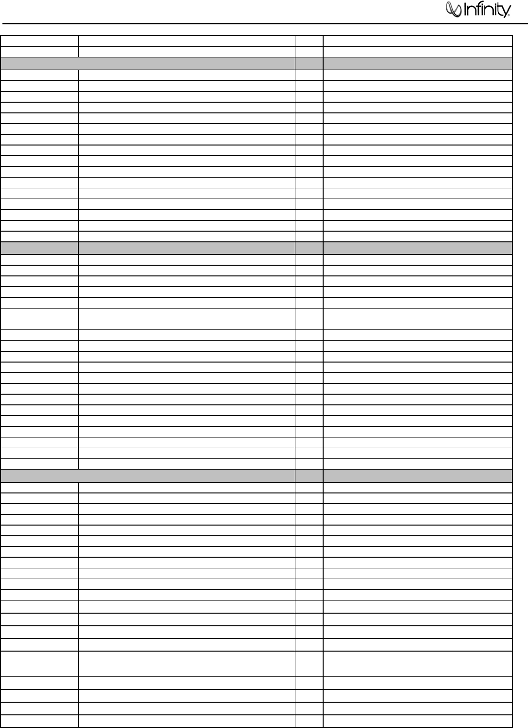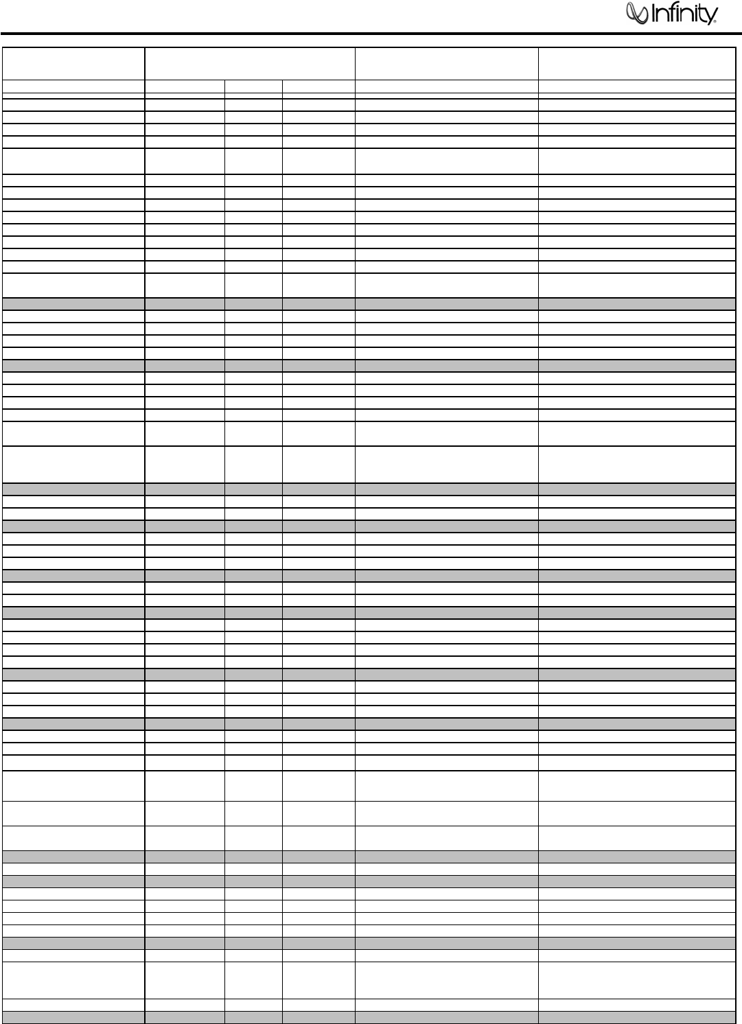 Infinity continually strives to update and improve existing products, as well as create new ones. The specifications