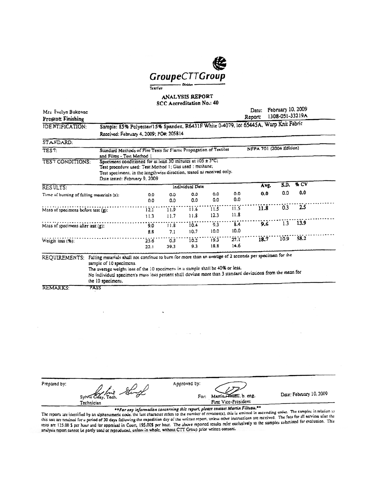 Flame Retardant Certificate
