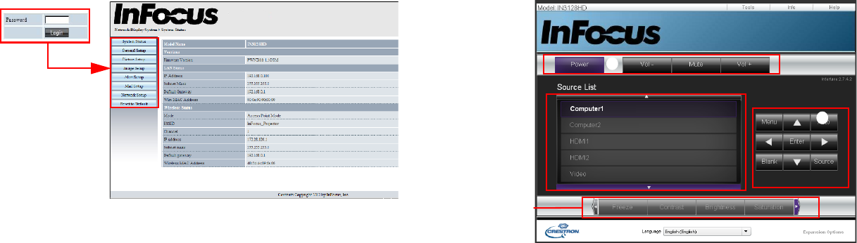 - Controlling the projector remotely through a web browser