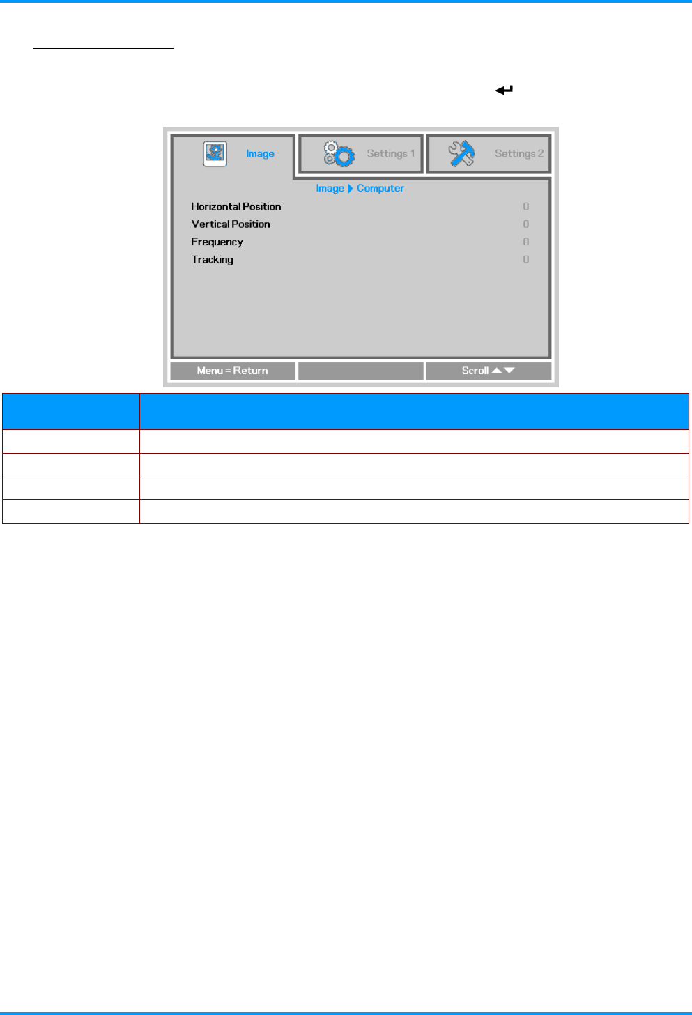 116V Projector Info menu PRI W 1 1 Display Projector Info menu