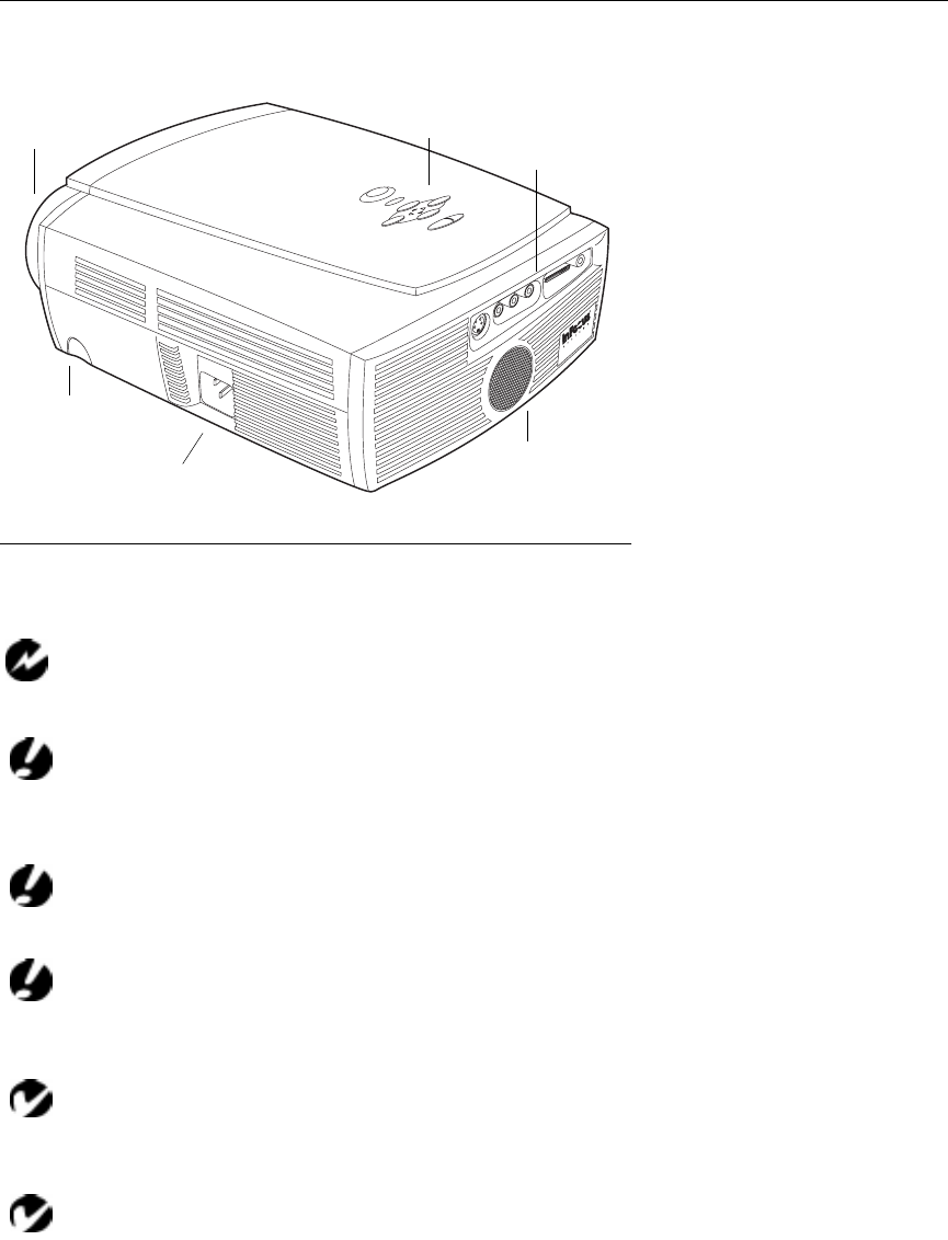 Do not block the grills on the projector. Restricting the air flow can