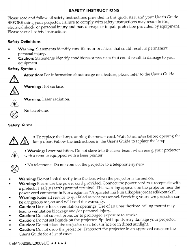 We declare under our sole responsibility that the ScreenPlay 4800 projector conforms to the following directives and norms: