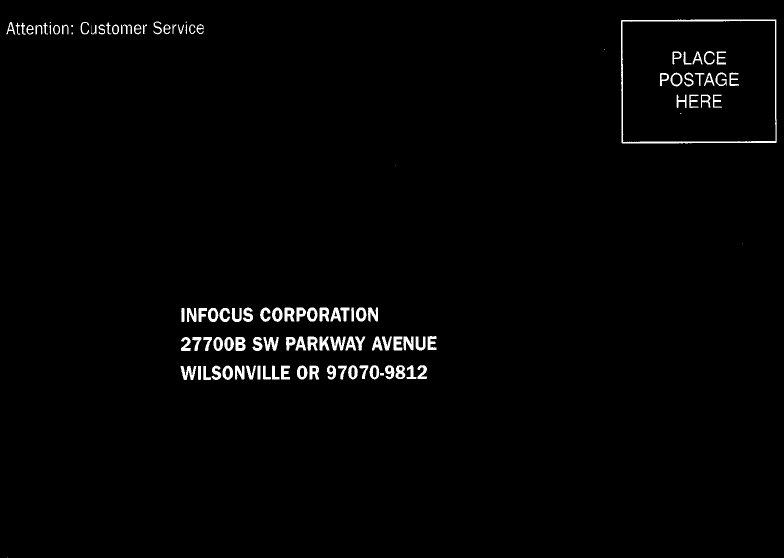 or to a service facility authorized by InFocus. When returning Product to