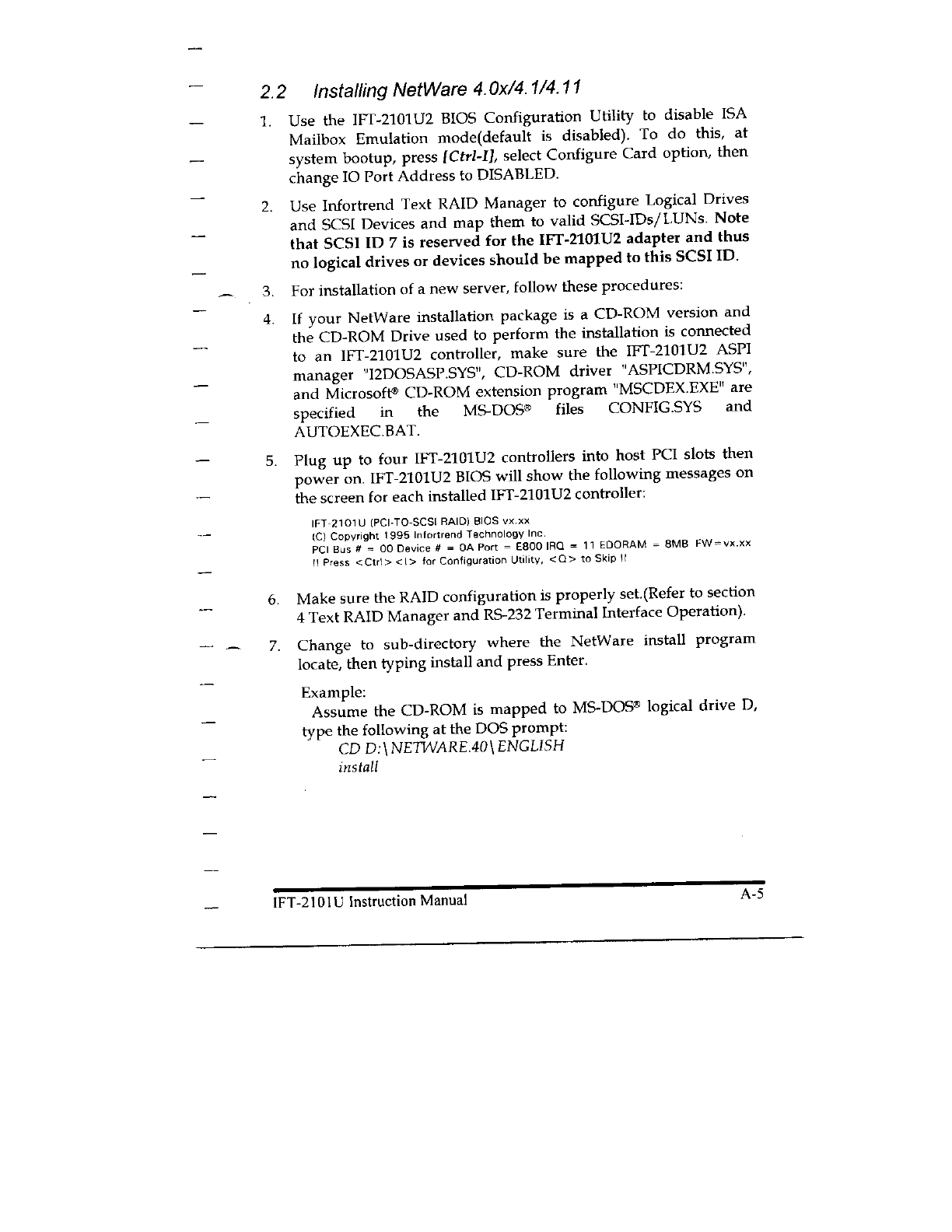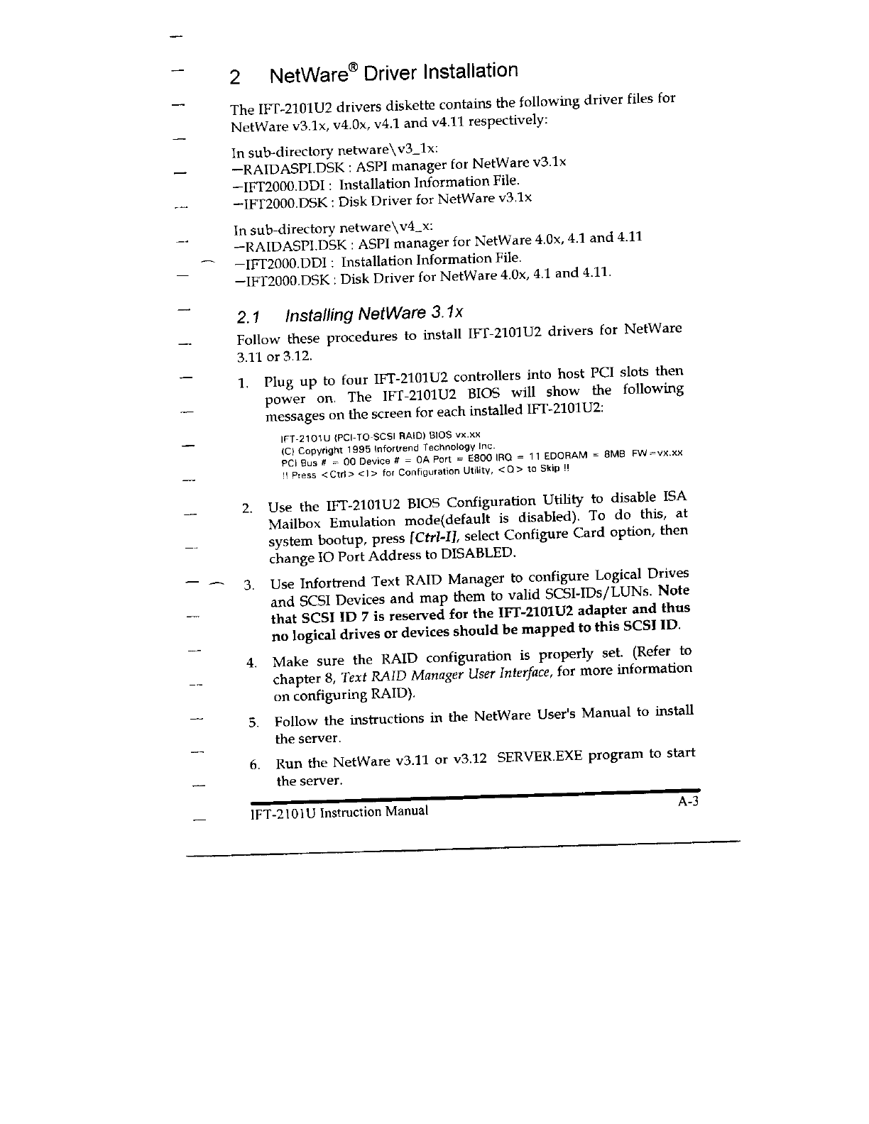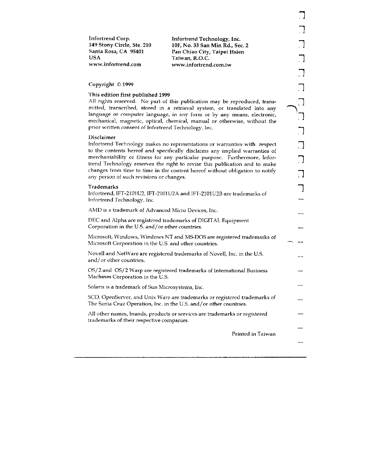 Infortrend Technology 2101U2 SCSI Disk Array Controller Card User Manual 55324