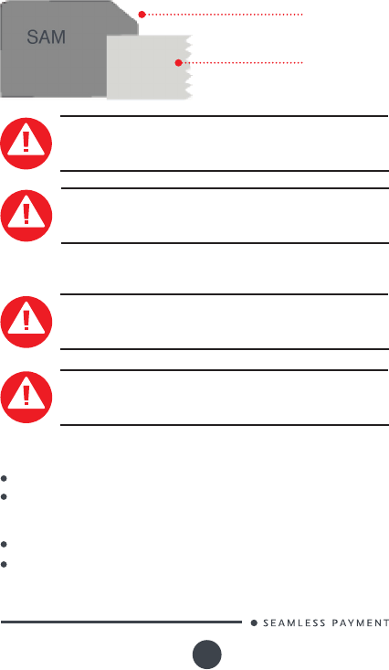 Insert the SAM Card into the slot marked (1) or (2). Take care
