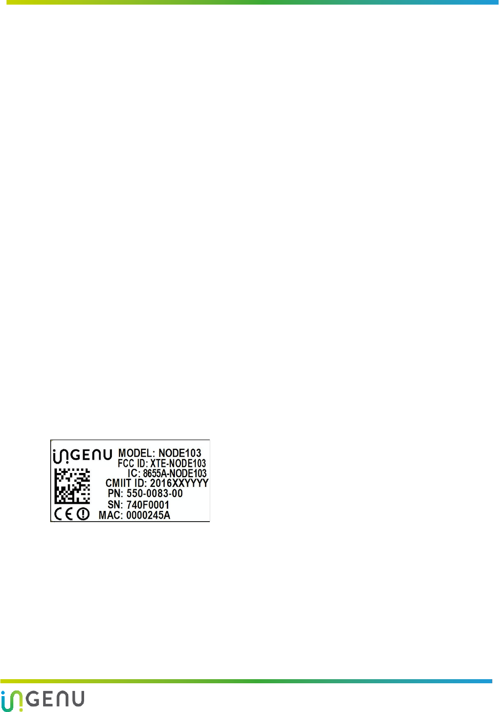 Ingenu NODE103 Wireless Network Module User Manual DRAFT NODE103 Integration SpecificationJune24