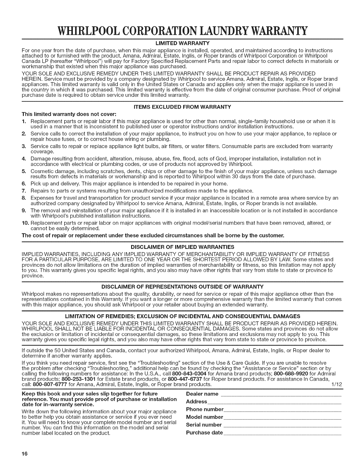 Inglis ITW4600YQ1 1210126L User Manual AUTOMATIC WASHER Manuals And Guides