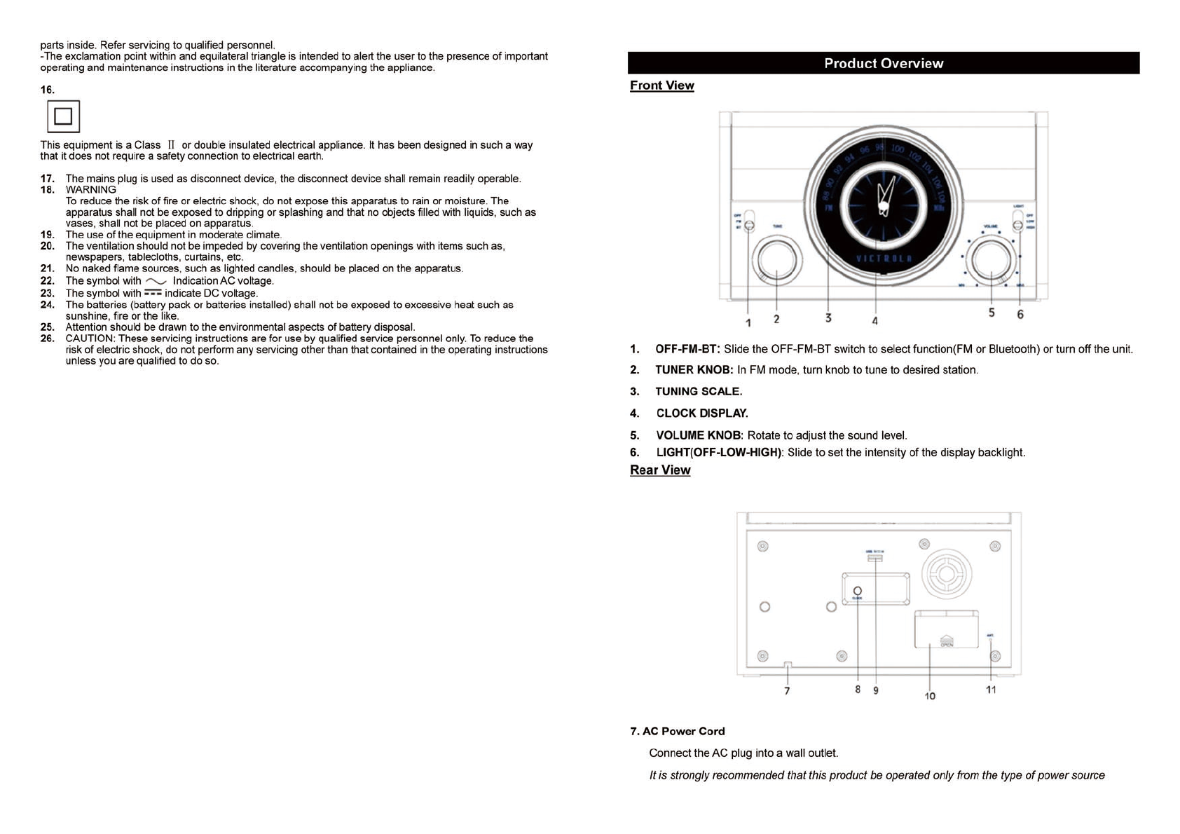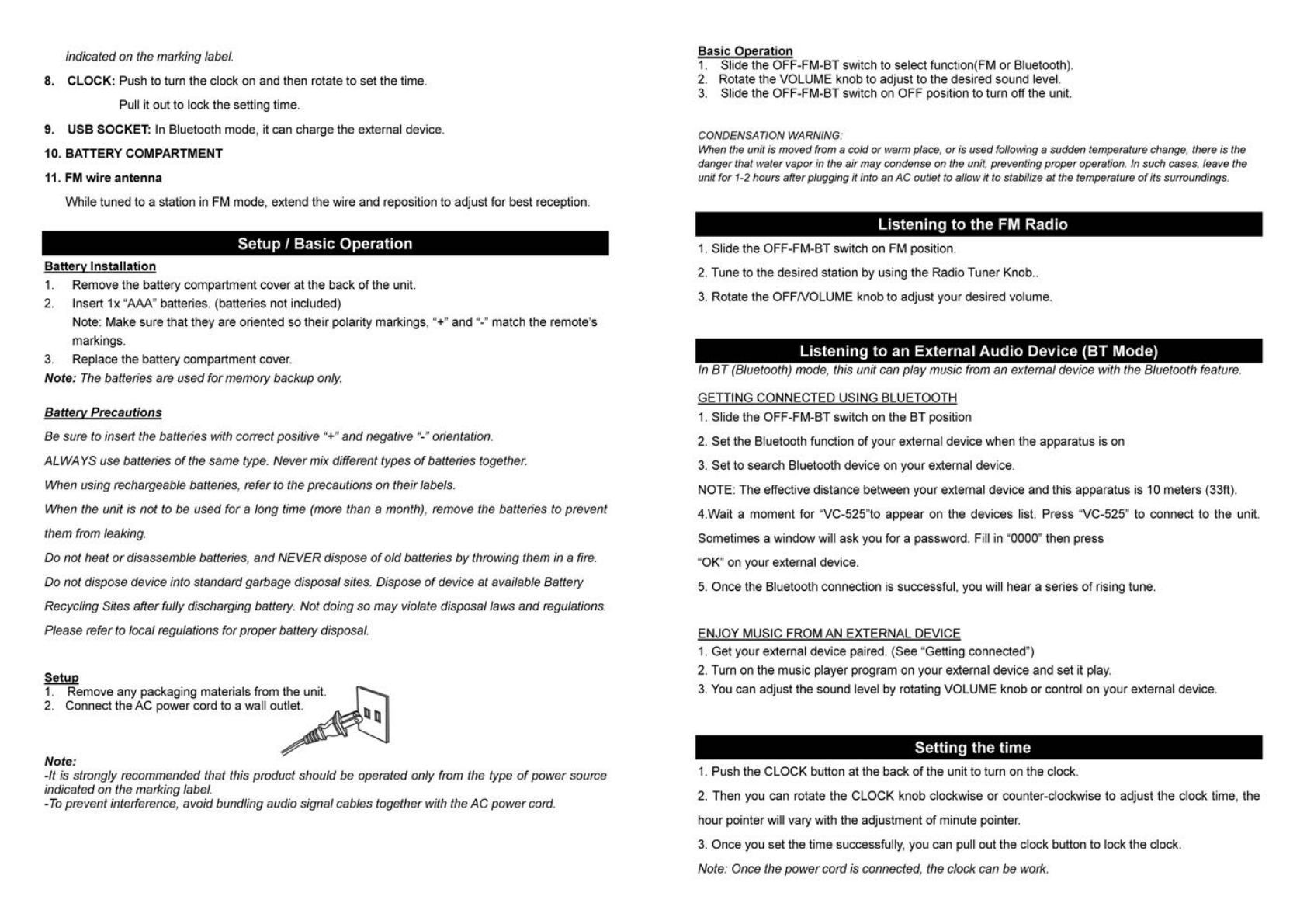 Innovative Technology Electronics VC525 Bluetooth Clock Stereo User Manual VC 525 IM