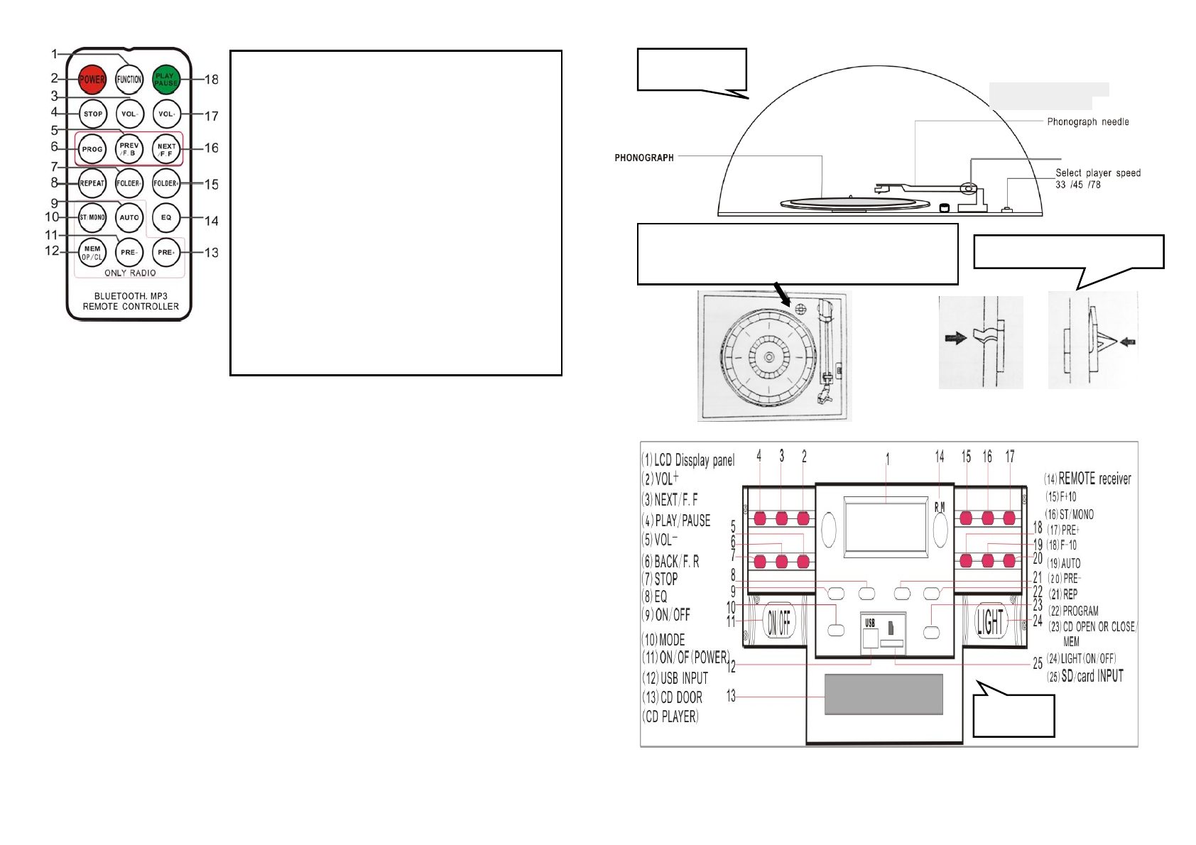 Note: PHONO play music, need to make sure the product back "PH/AUX"