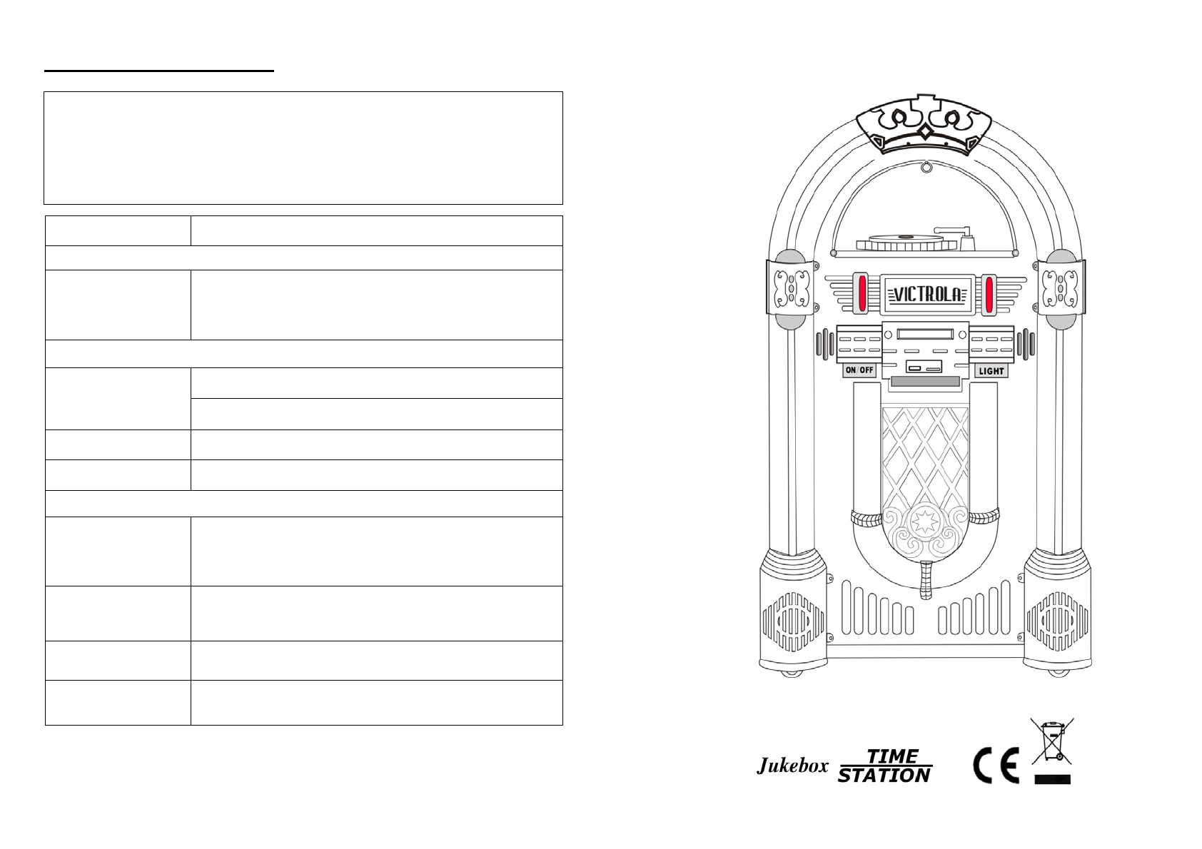 Innovative Technology Electronics VJB-105 Large Full Size Vinyl Turntable Jukebox User Manual