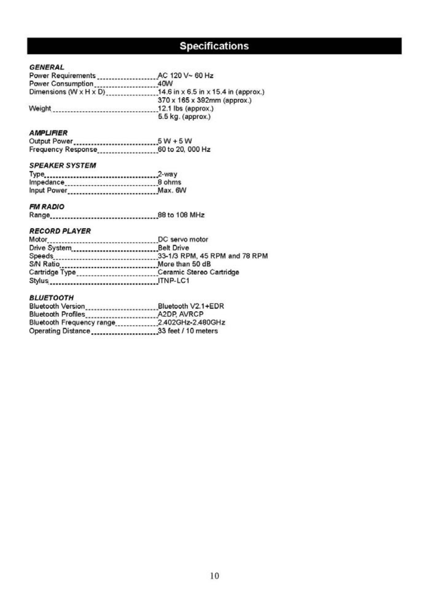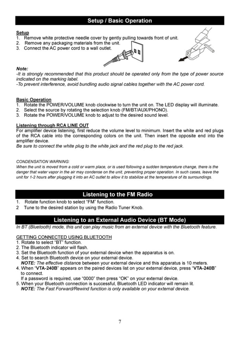 Innovative Technology Electronics VTA240B Music Center with Bluetooth User Manual