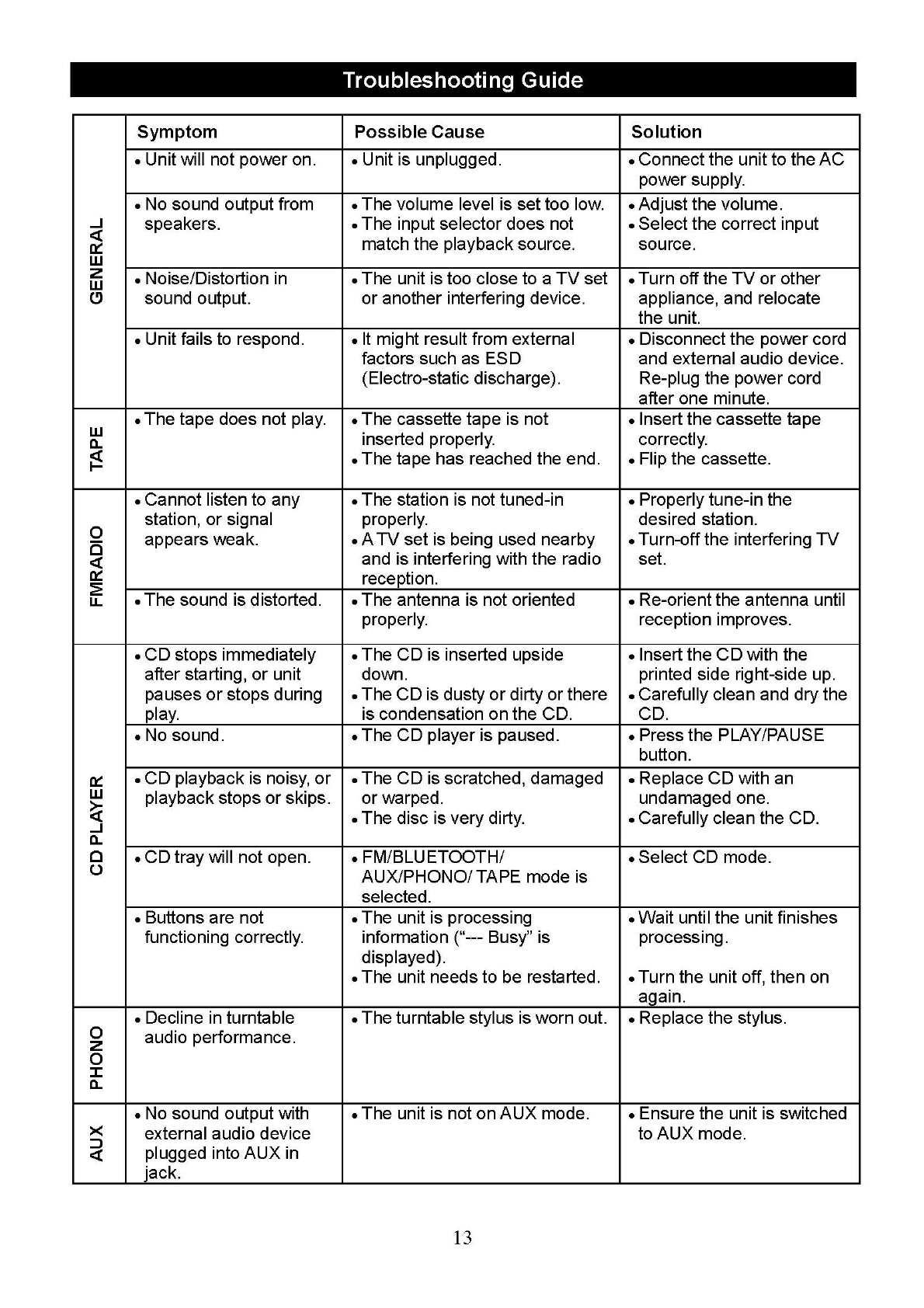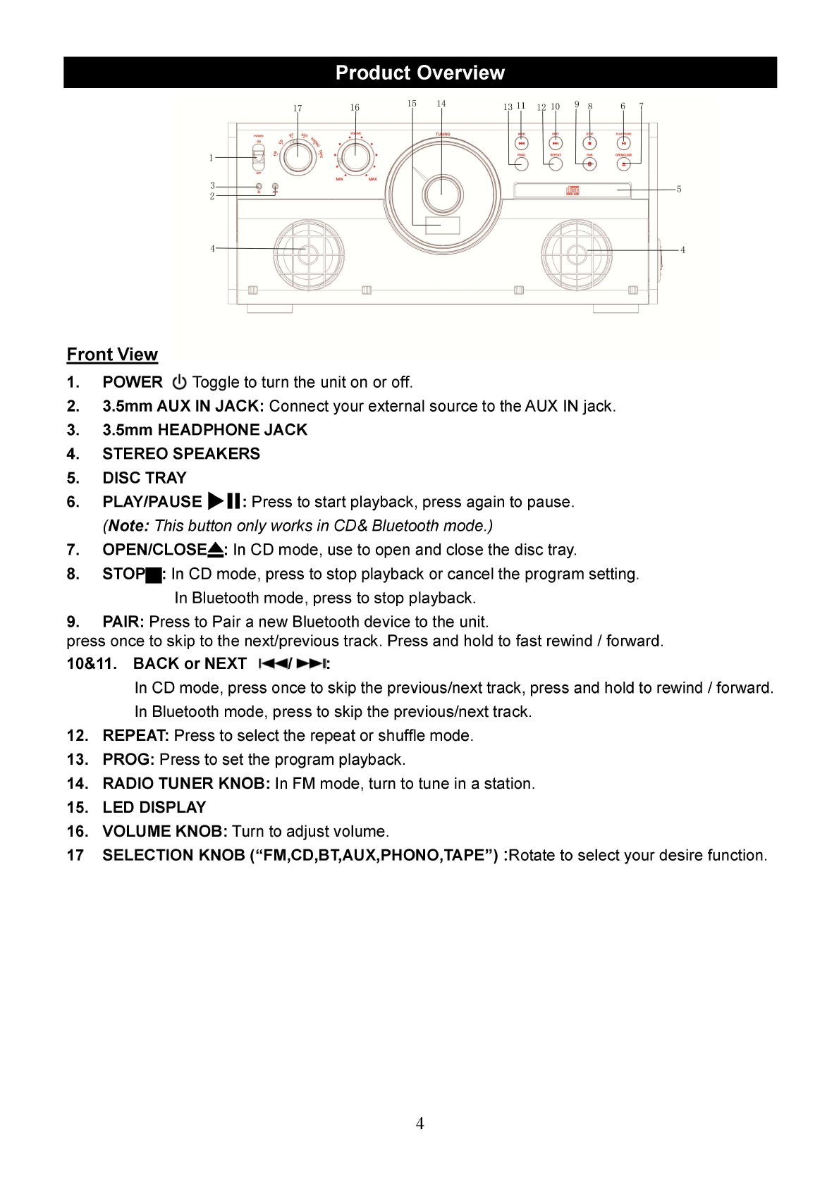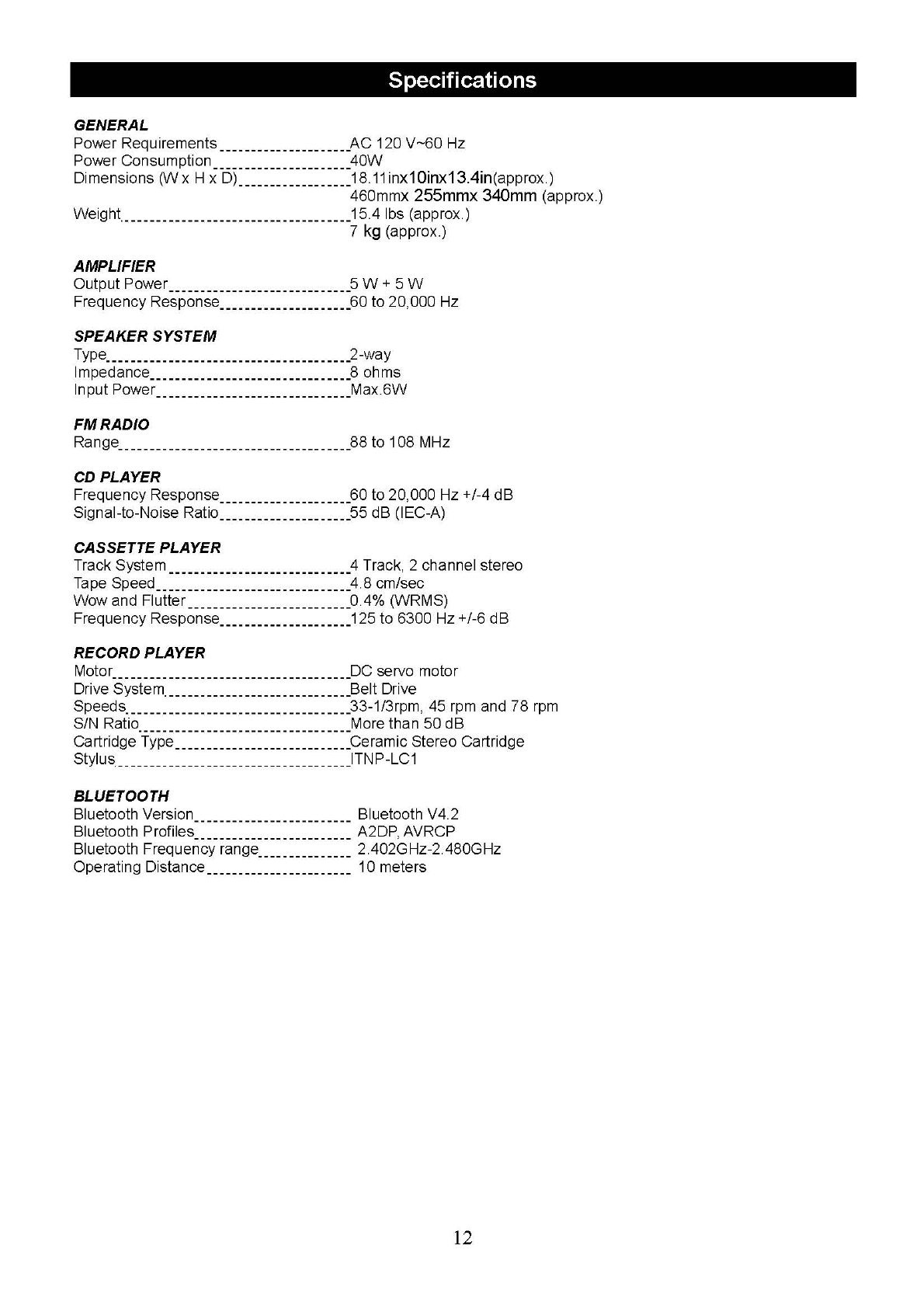 Innovative Technology Electronics VTA270B Music Center with Bluetooth User Manual