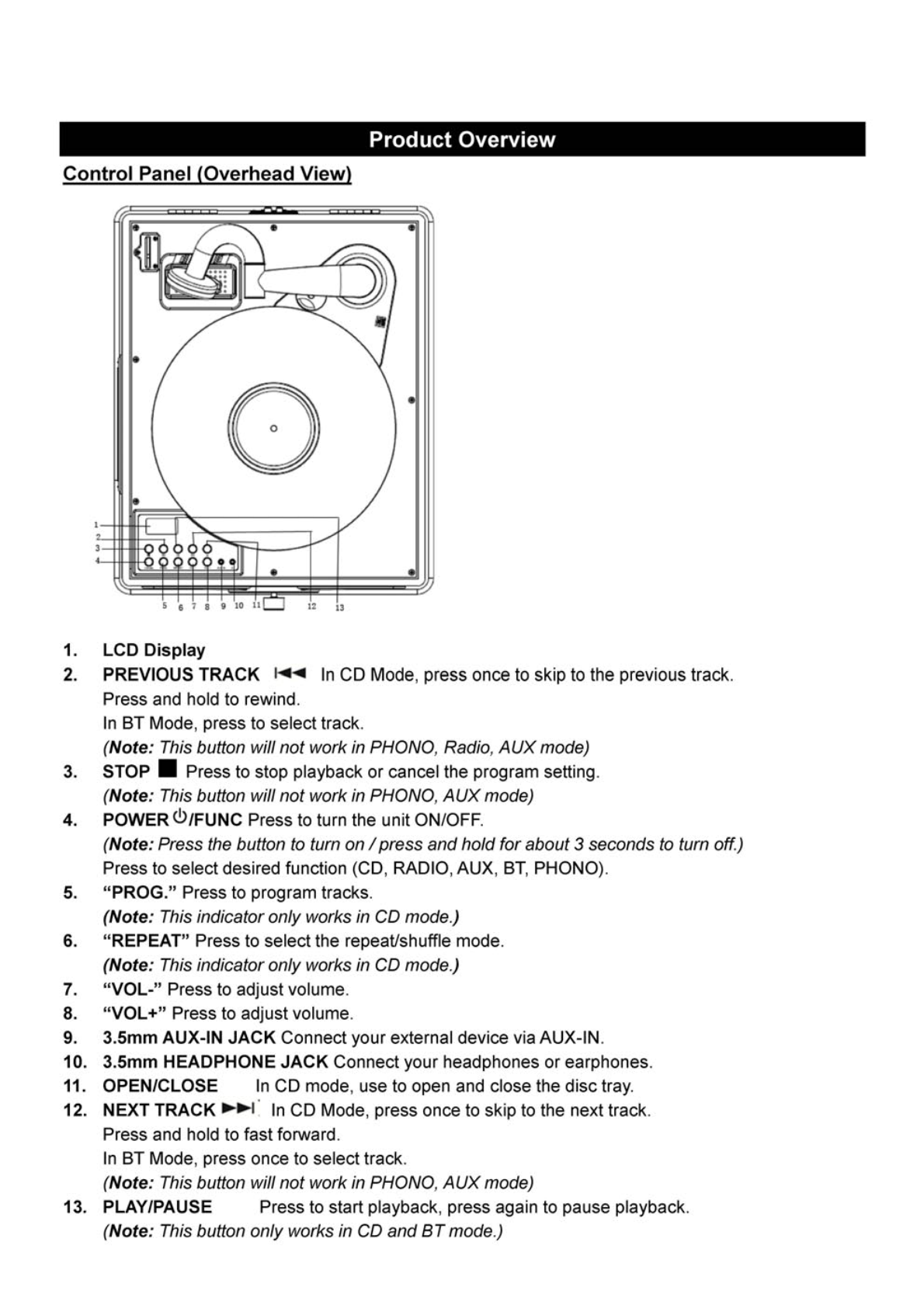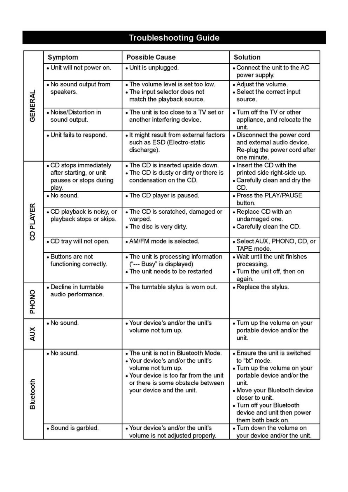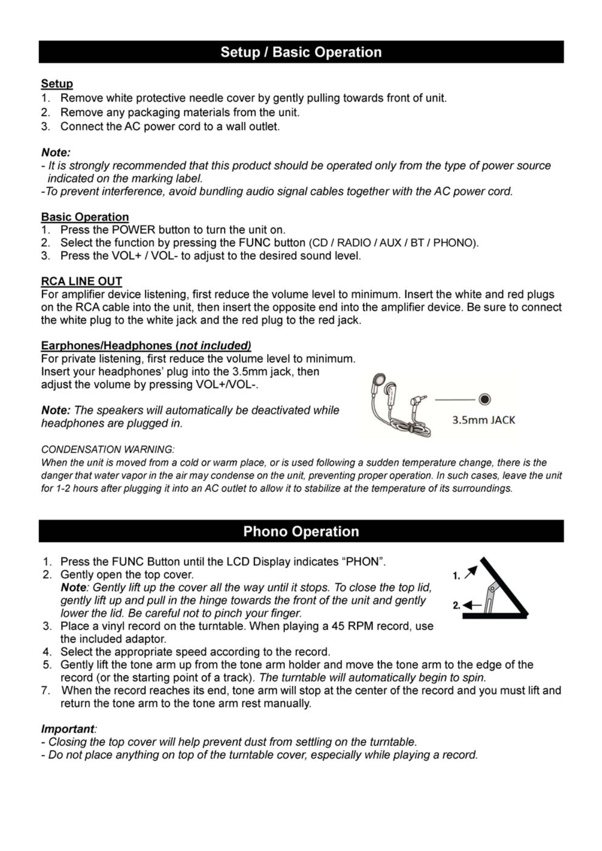 Innovative Technology Electronics VTA800B Music Center with Bluetooth User Manual