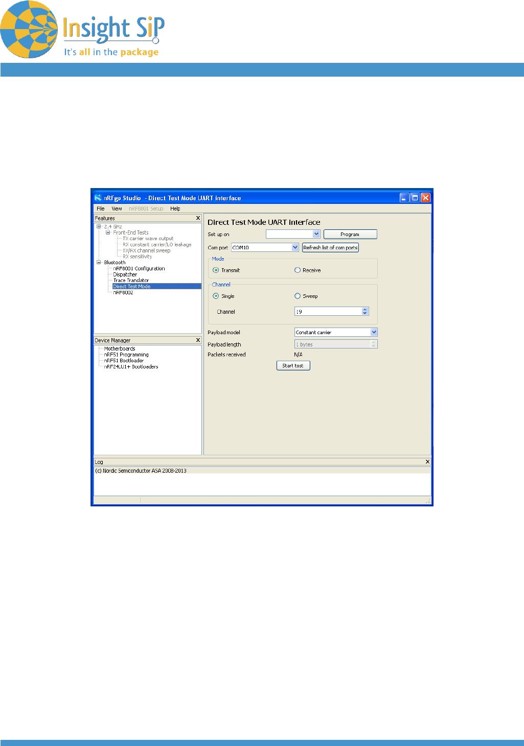 3. For details on how to use the Direct Test Mode, press F1 to open the nRFgo Studio help.
