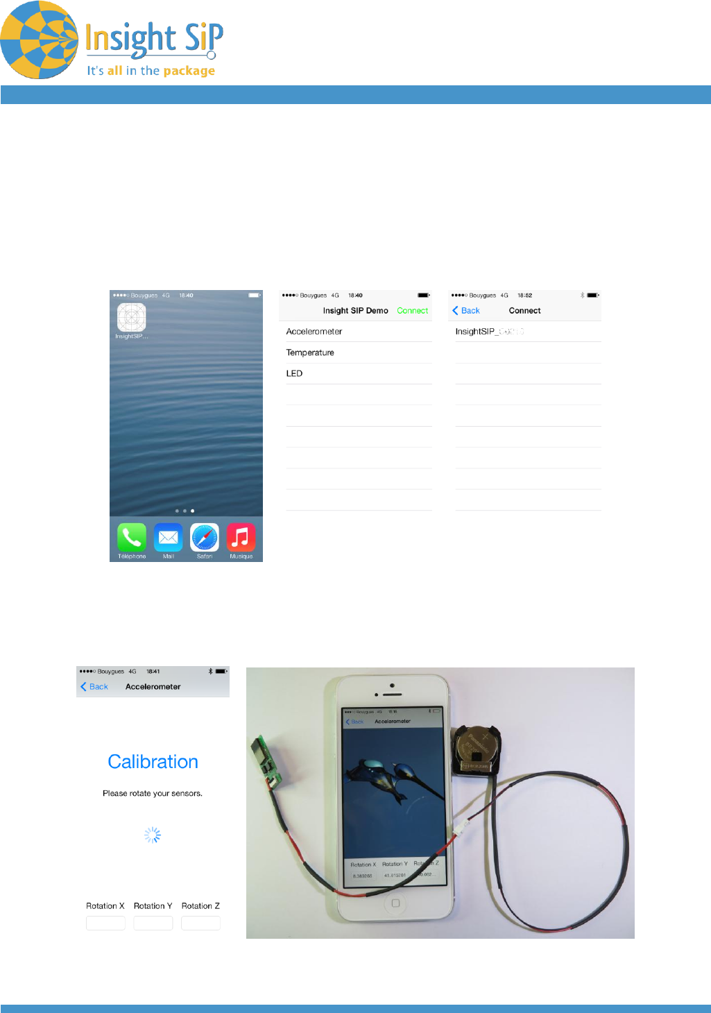 3. Start InsightSiPDemo application on your iPhone, click Connect and select your Sensors Board