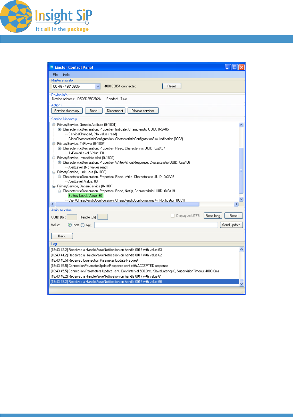 This document gives details on hardware and software for using and testing Insight SiP Bluetooth Low