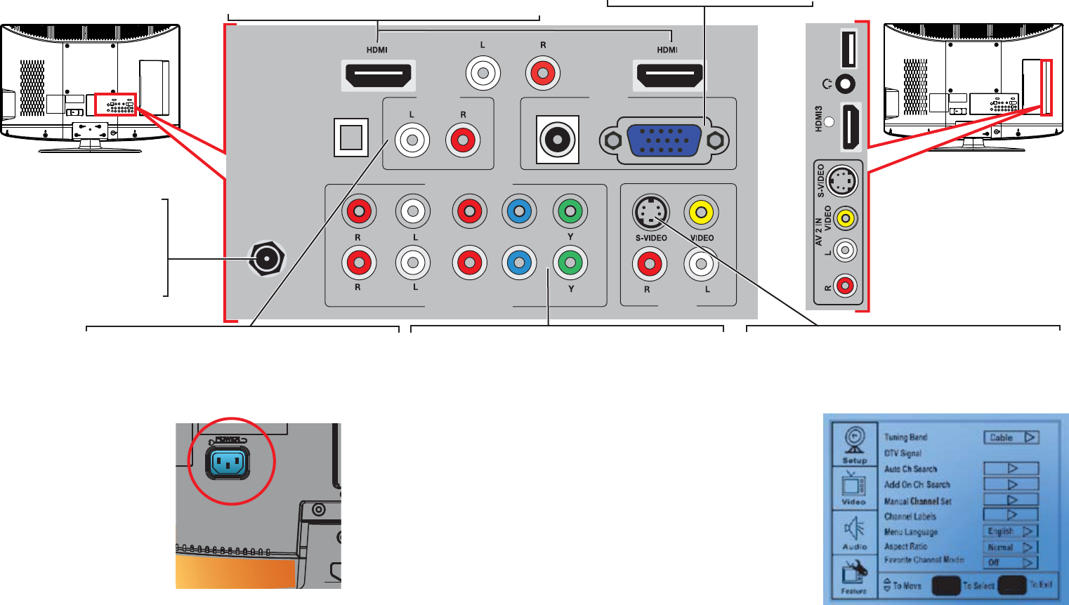 Component Video Input 1 and 2 • Entrada de video de componentes 1 y 2