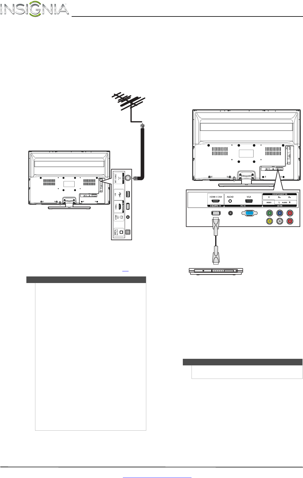 Connecting an antenna or cable TV (no box) . . . . . . . . . . . . . . . . . . . . . 12