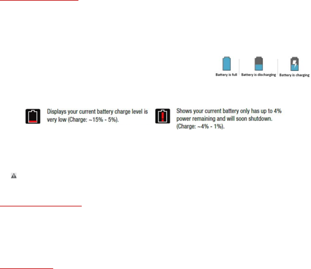 • If the Tablet is powered on, the battery charge status will be