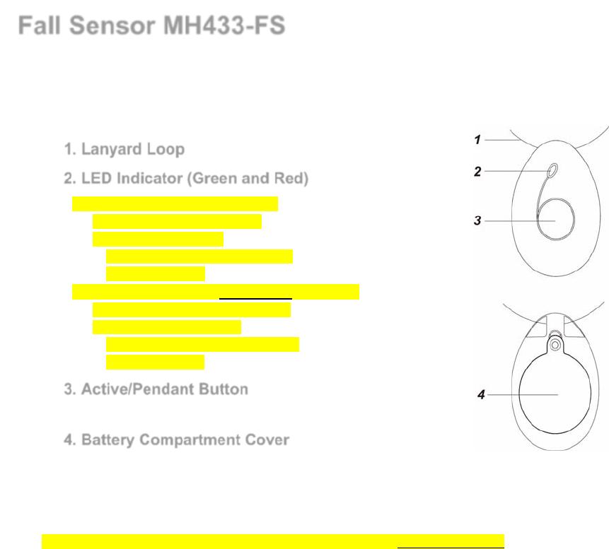 The Fall Sensor transmits a signal to Control Panel whenever it detects a fall. The user may also press the
