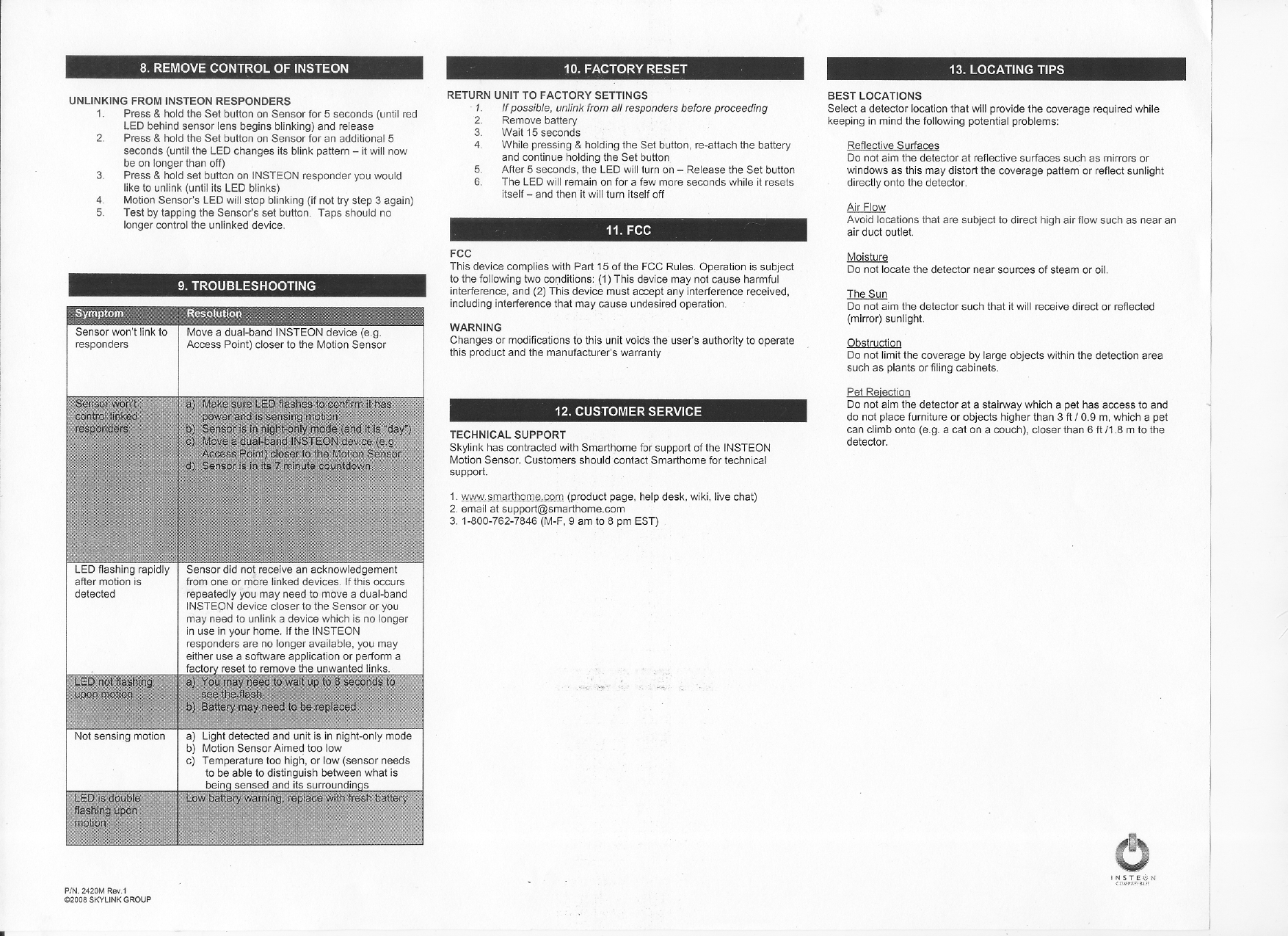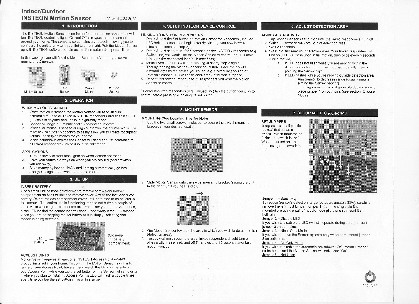 Insteon Technologies 2420M Insteon Motion Sensor User Manual