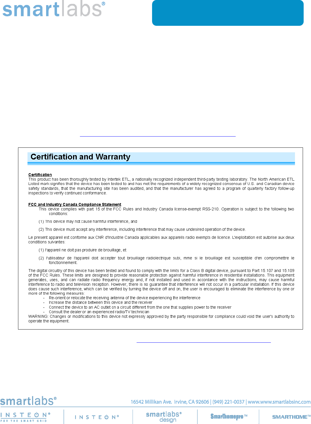 Protected under U.S. and foreign patents (see www.insteon.com )