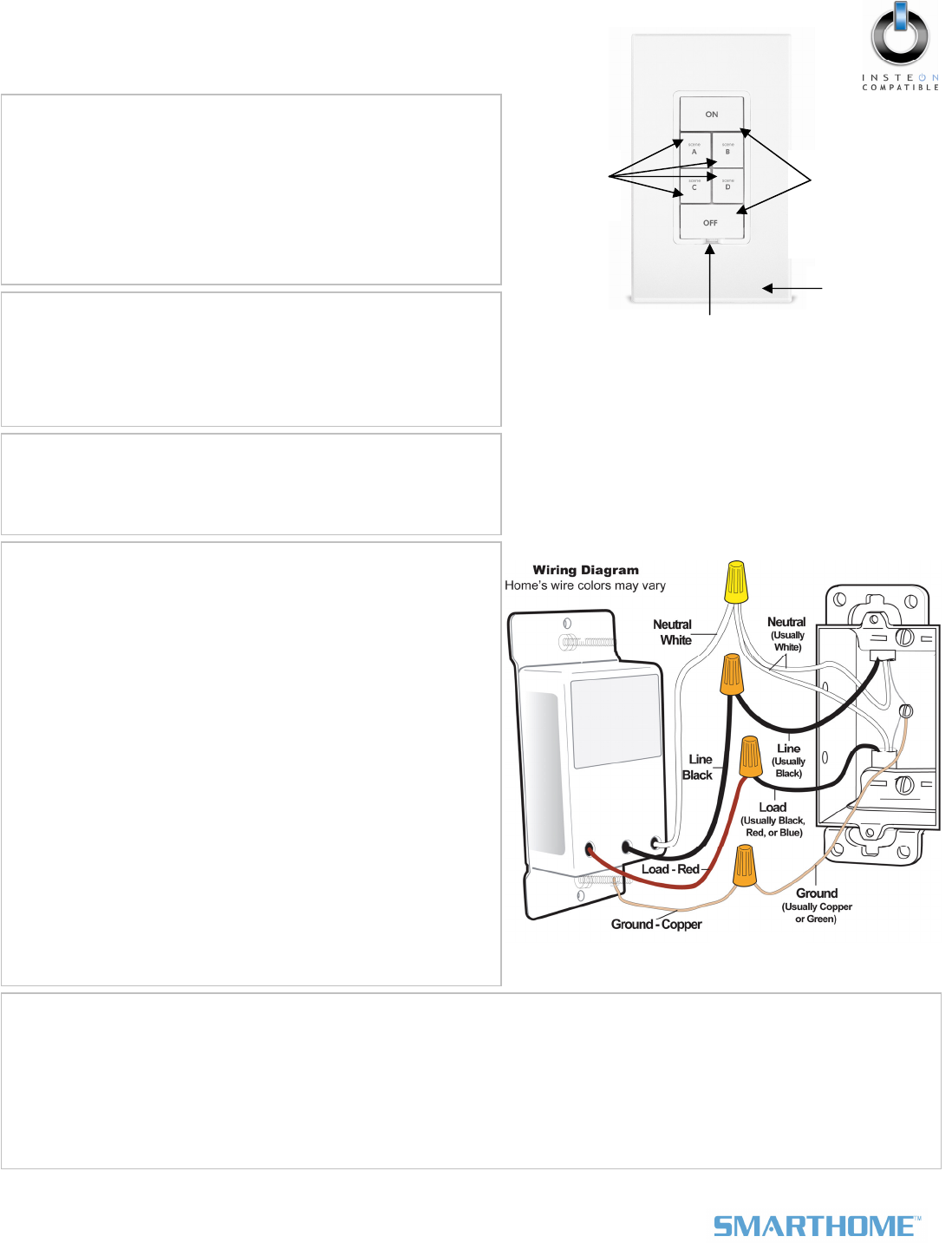 SmartLabs, Inc. INSTEON 120-277V Heavy-Duty Dual-Band Wall Switch 2487S QSG 20100104