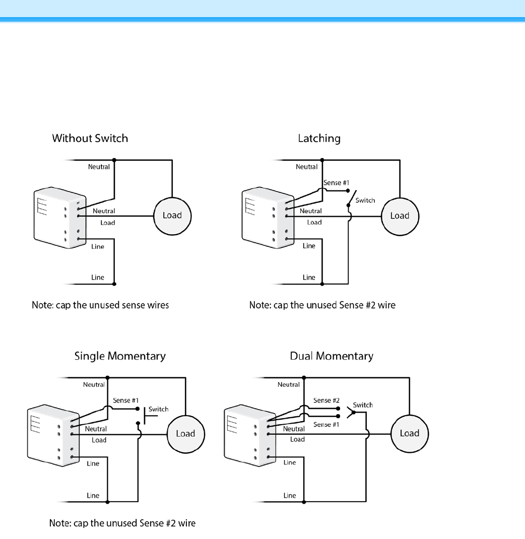 - Sense wires allow local control from any standard wall switch