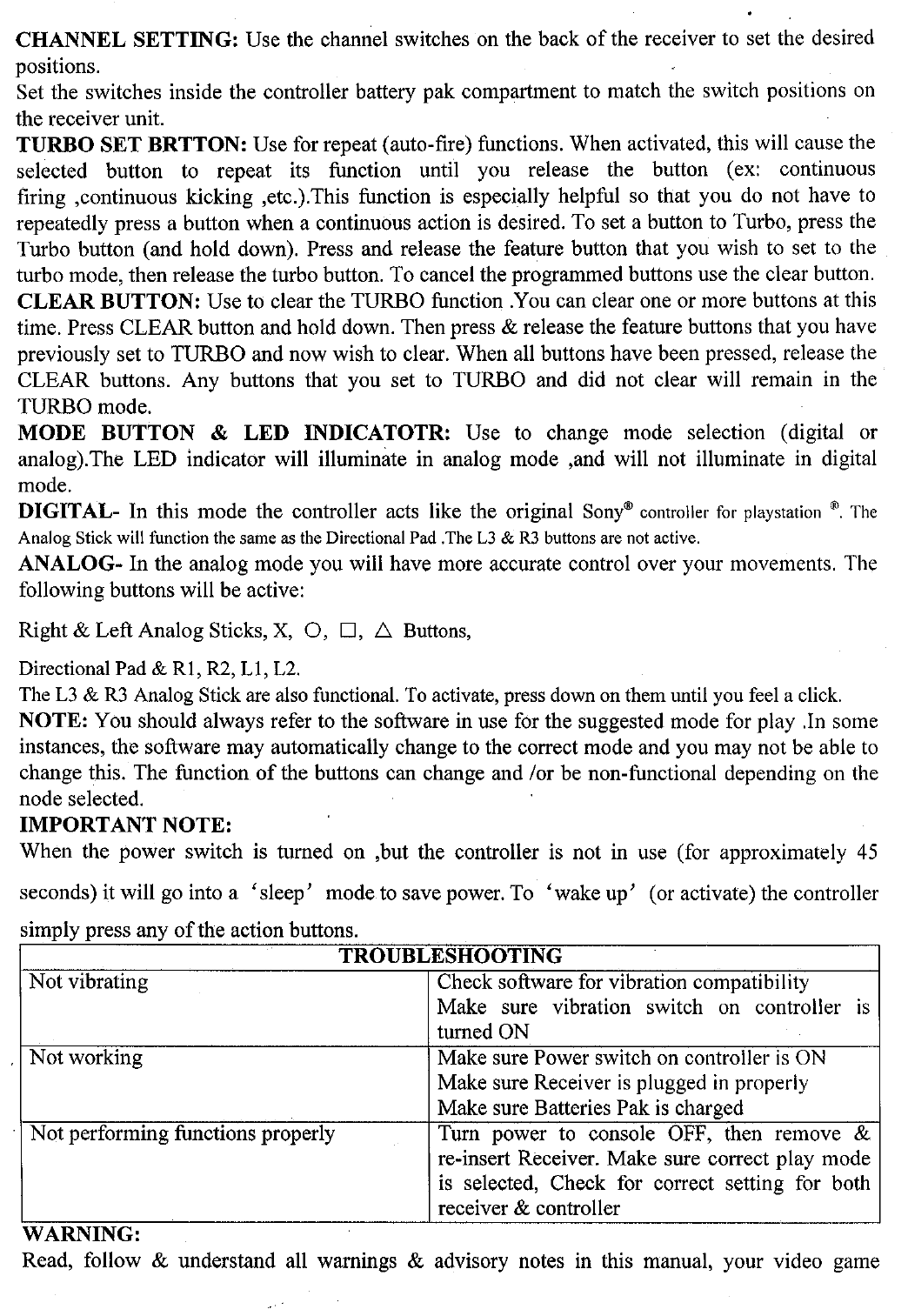 Intec Inc. PS2 2.4G RF WIRELESS CONTROLLER MANUAL