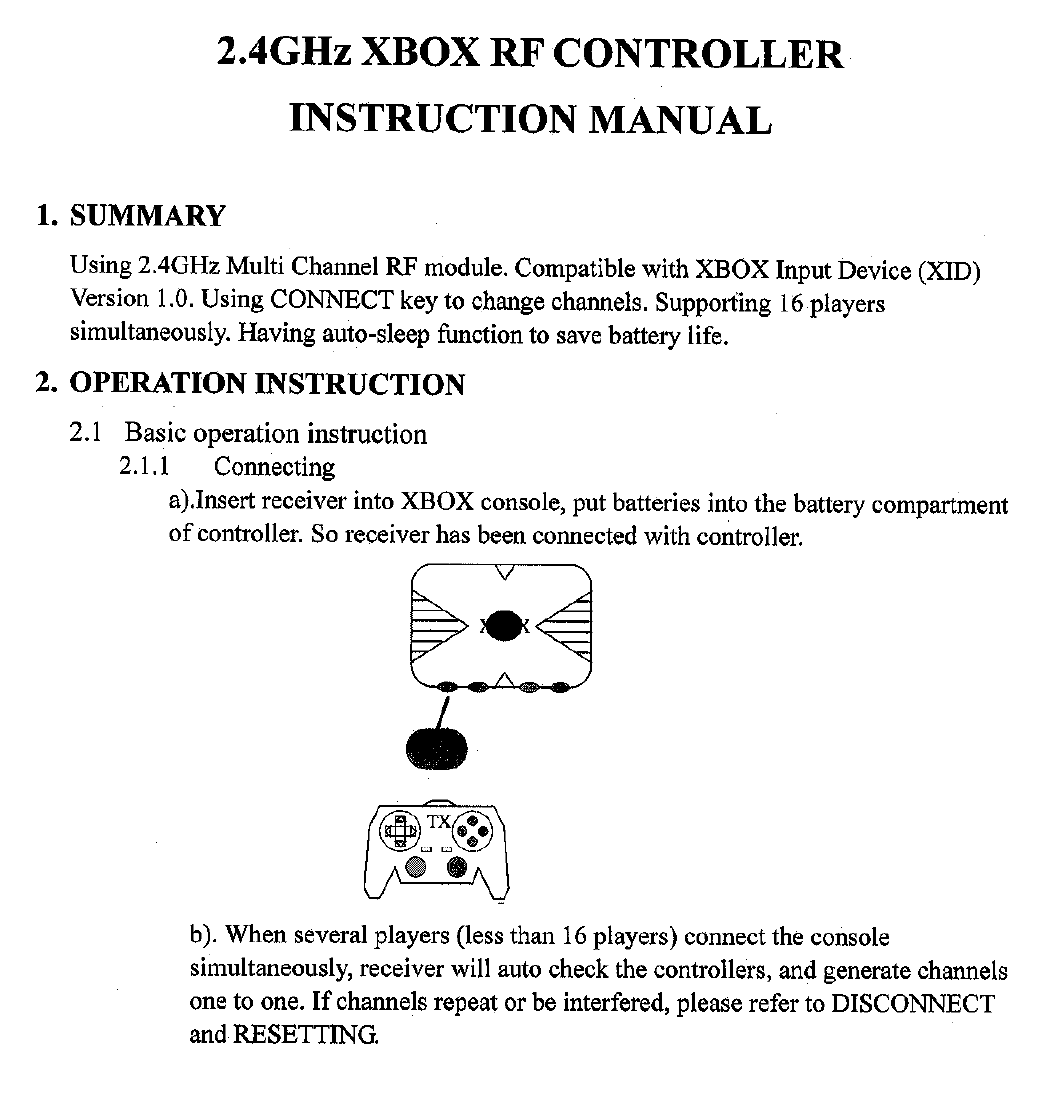 Intec Inc. X-Box 2.4G RF Wireless Controller FCC ID:RDD80852001