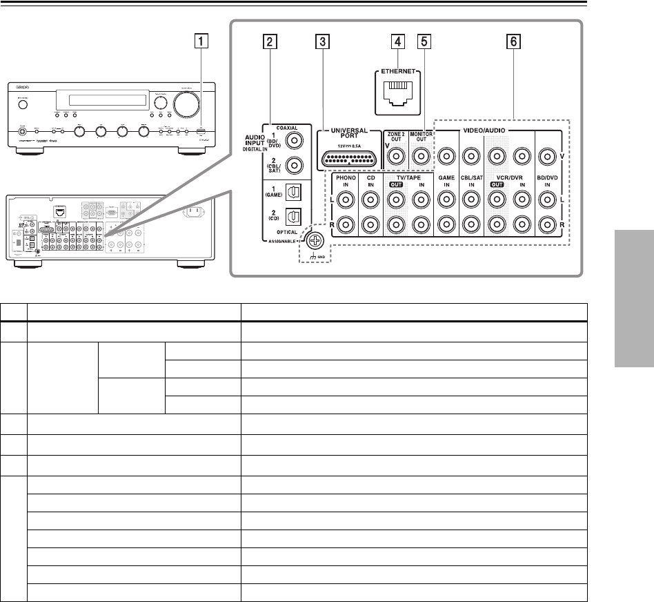 Analog Inputs PHONO, CD, TV/TAPE, GAME,