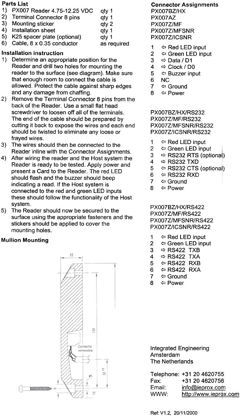 Integrated Engineering HPROX-02 Inductive proximity card reader User Manual