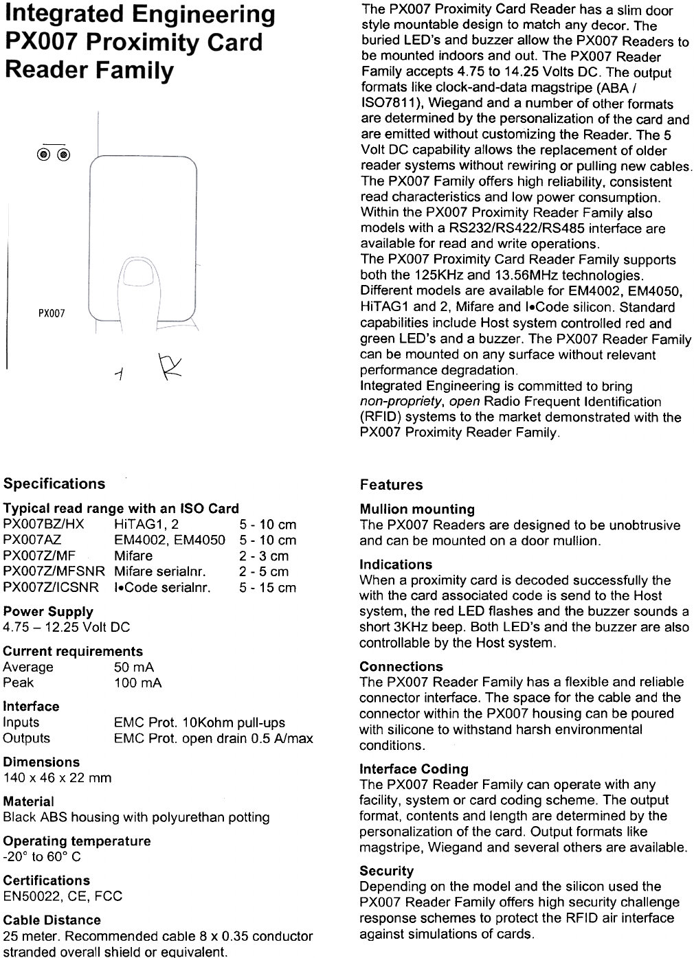 Integrated Engineering I-MSNRPOX-02 Inductive proximity card reader User Manual